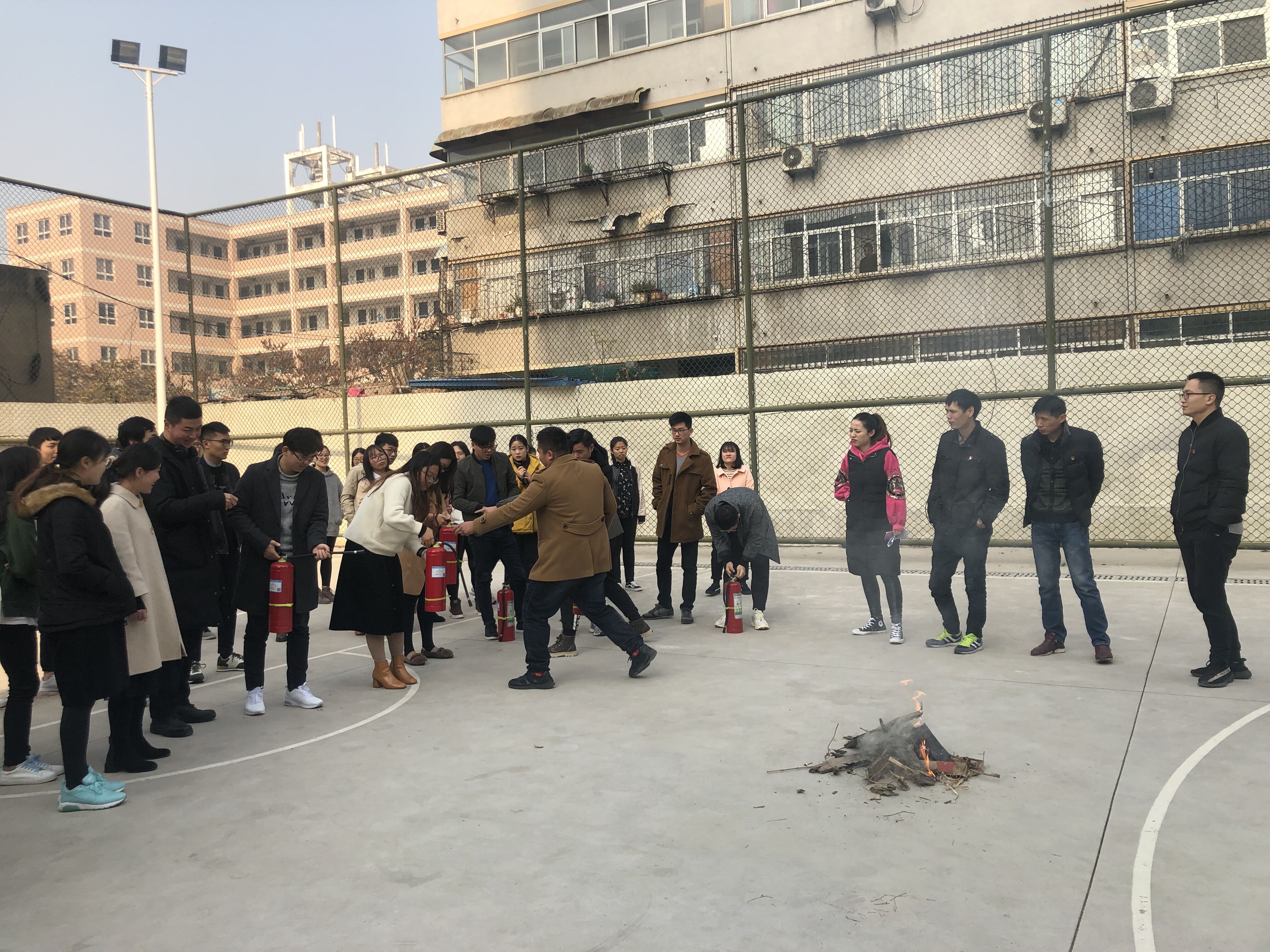 为进一步加强371教学基地安全工作,营造安全、稳定、和谐的校园环境,切实的增强学生们的消防安全意识,了解消防安全知识,提高紧急逃生能力。11月21日上午,371教学基地二大班全体同学参加了“消防安全知识讲座及灭火器操作演练”活动。
