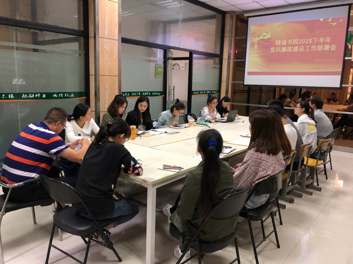 为深入贯彻学习学院党委关于2018年党风廉政建设工作要点,9月10日上午,精诚书院党总支在平原校区书院会议室召开了党风廉政建设工作部署会议,全面总结2018年上半年党风廉政建设工作,安排部署2018年下半年相关工作。书院全体教师参加,会议由党总支书记张新主持。