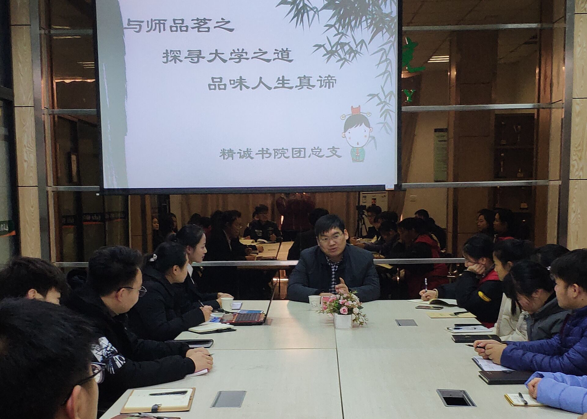 “梦想从学习开始,事业靠本领成就。广大青年要自觉加强学习,不断增强本领。”这是习总书记讲给青年的话,也是赋予青年的时代责任。2018年12月19日下午,新乡医学院三全学院学务长邱永建做客精诚书院与师品茗,和同学们一起面对面交流——探寻大学之道,品味人生真谛,为同学们树立自律自强自信的大学生活。