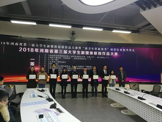 1月13日下午,河南省第三届大学生新媒体原创作品大赛暨新青年讲故事演讲比赛颁奖典礼在河南日报报业大厦一楼融媒体中心举行。我书院高源荣、李梦蝶、杨卫红的原创作品《三全学子见义勇为显担当 被救少女辗转百里赠锦旗》喜获一等奖。