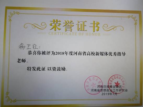 同时,我书院杨卫红老师被评为优秀指导老师。
