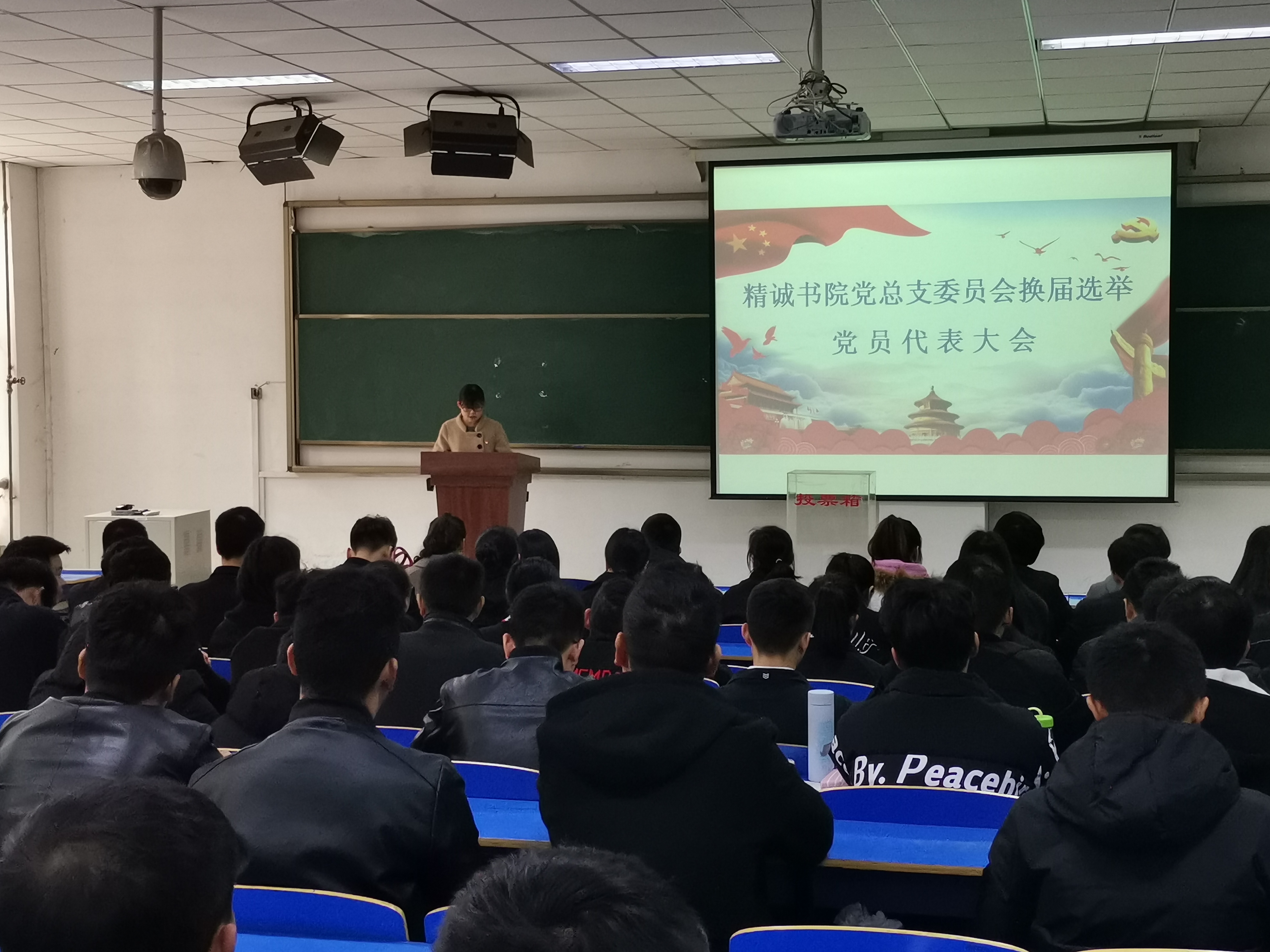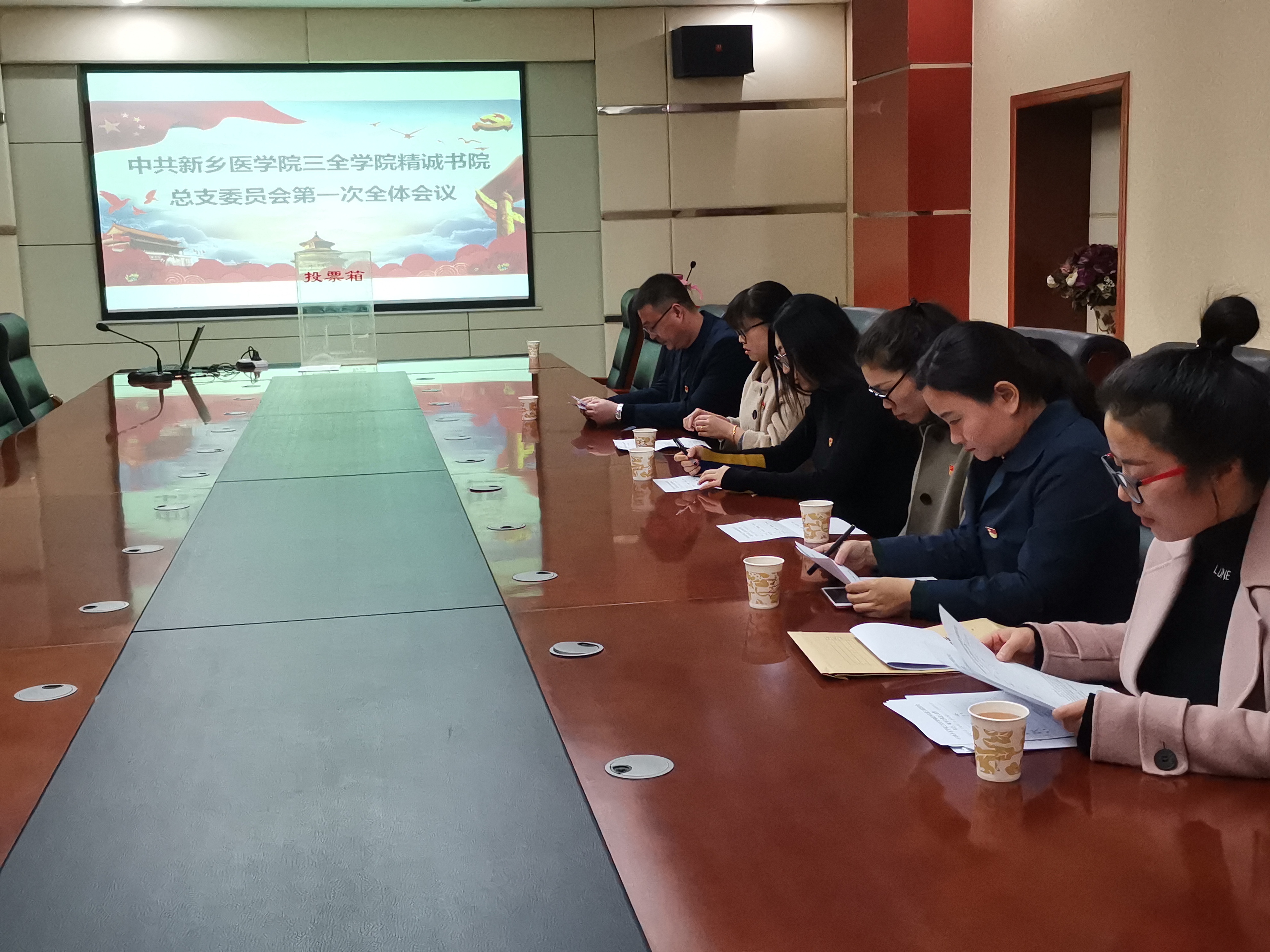 3月4日下午,中共新乡医学院三全学院精诚书院总支委员会换届选举党员代表大会在新乡校区问学楼101教室隆重召开。书院全体师生党员代表参加了大会,会议由党总支副书记万建苗主持,党委办公室宋晨阳同志莅临本次大会,参加并监督换届选举工作。