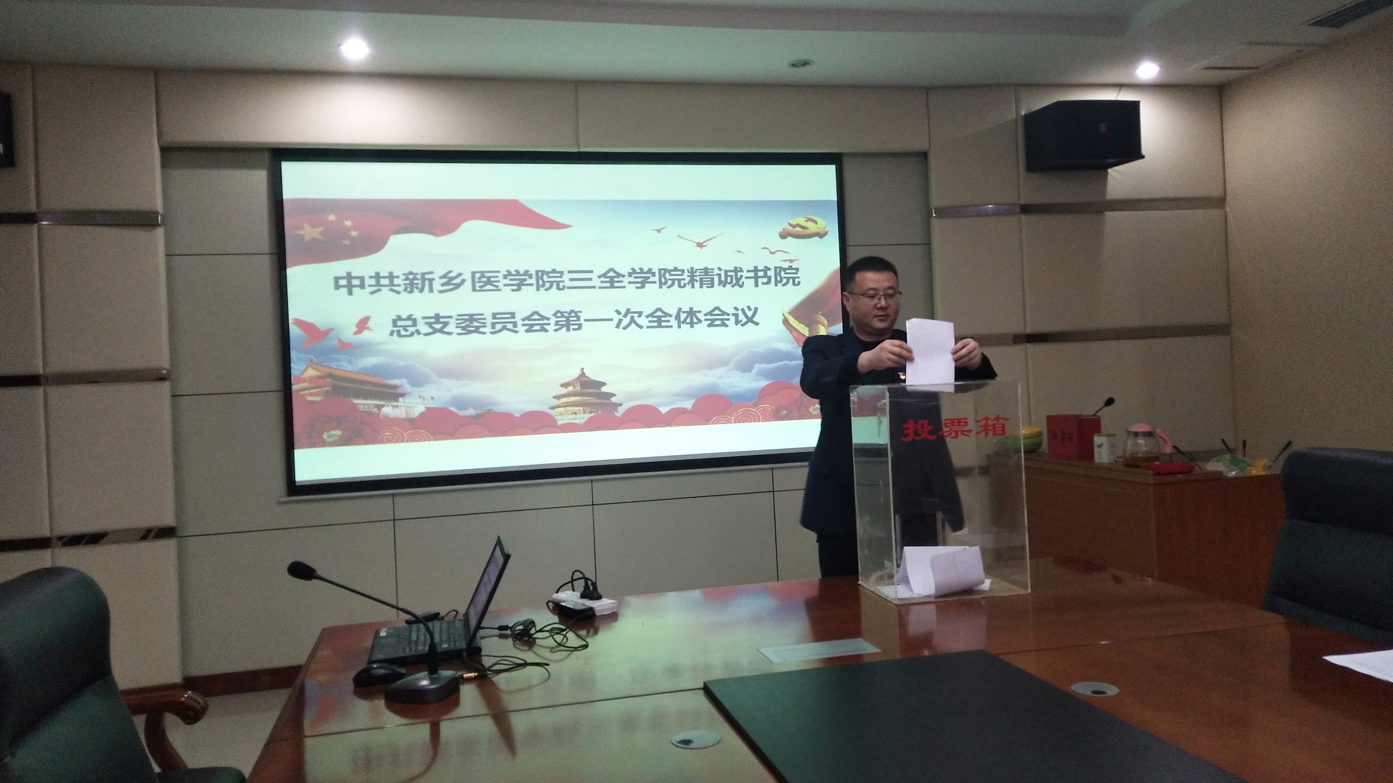 3月4日下午,中共新乡医学院三全学院精诚书院总支委员会换届选举党员代表大会在新乡校区问学楼101教室隆重召开。书院全体师生党员代表参加了大会,会议由党总支副书记万建苗主持,党委办公室宋晨阳同志莅临本次大会,参加并监督换届选举工作。