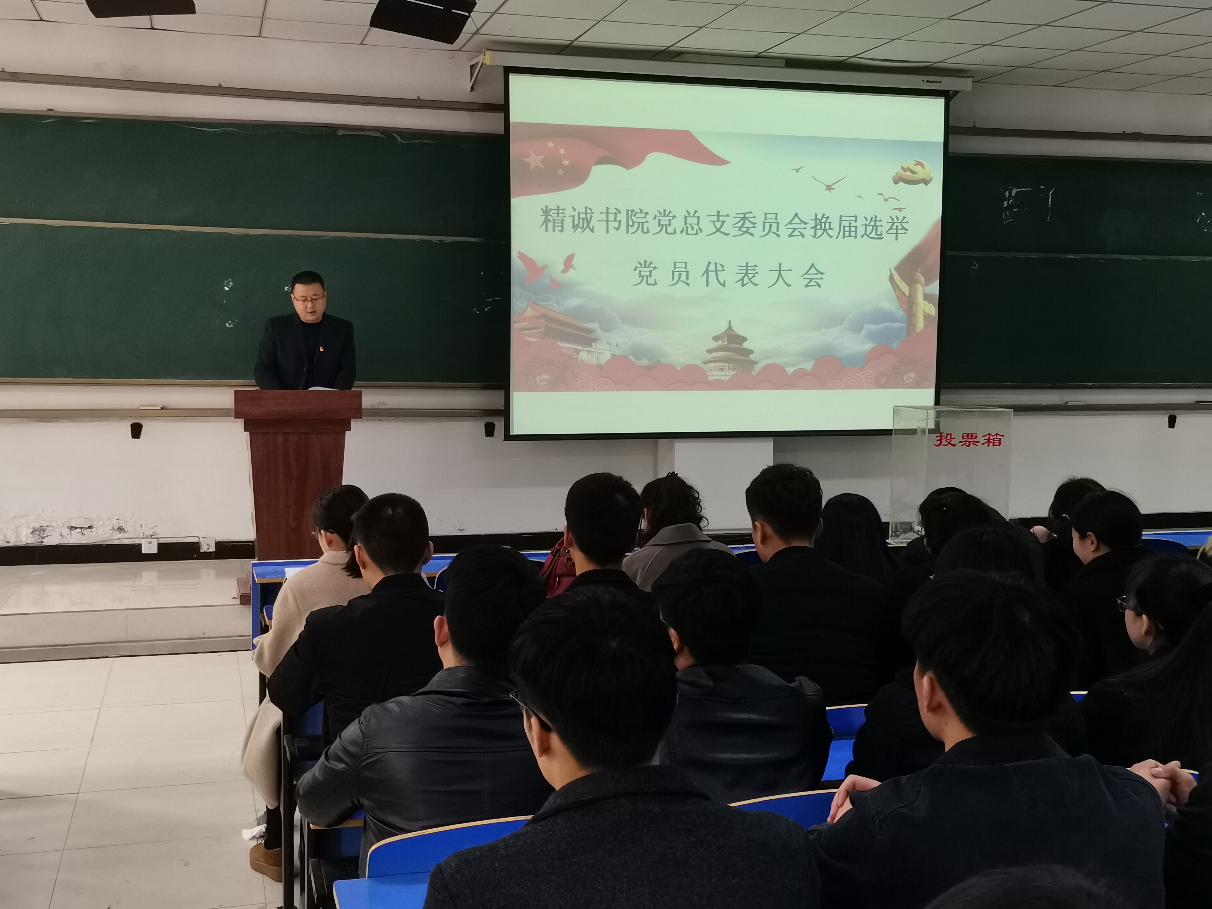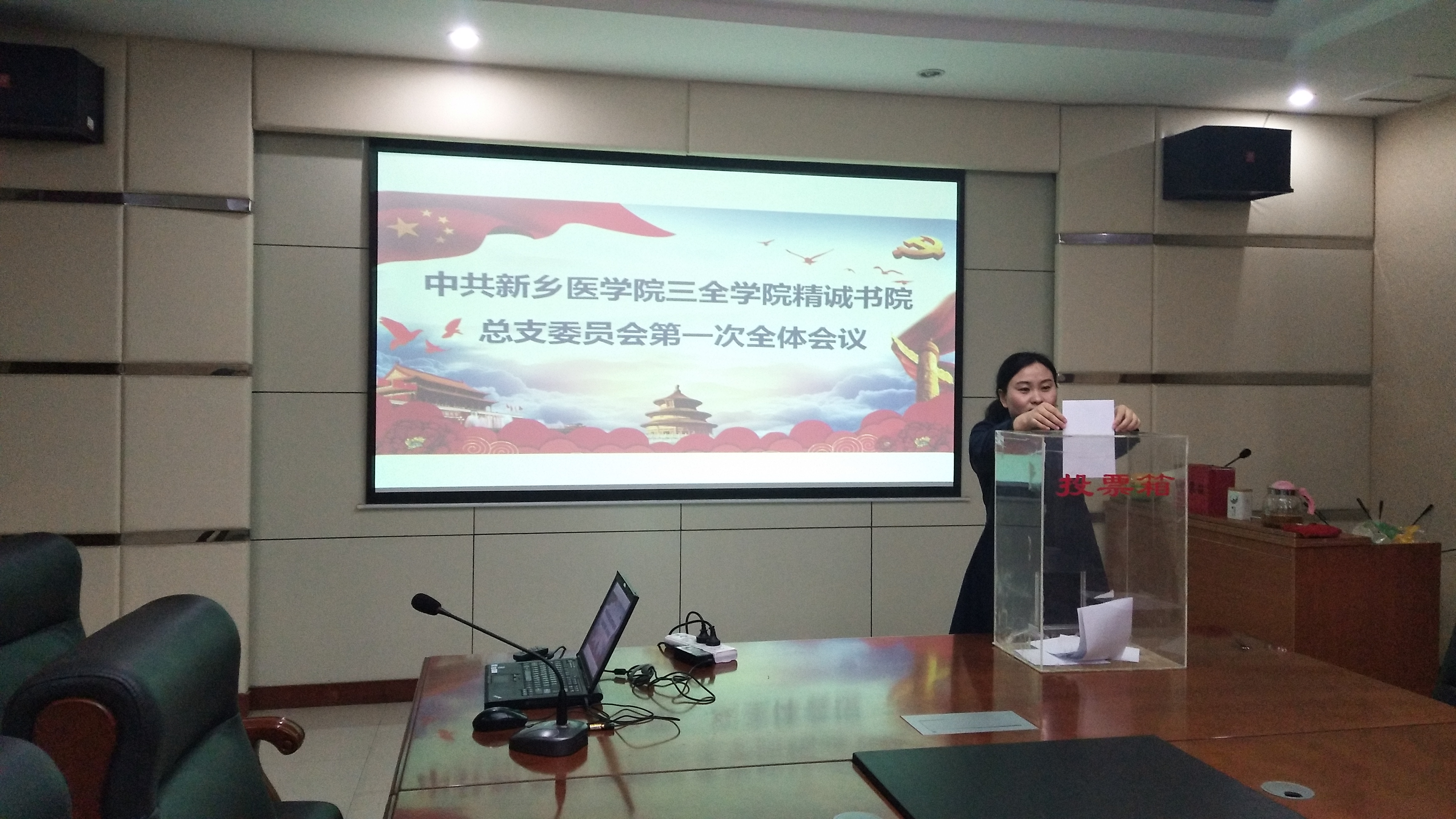 3月4日下午,中共新乡医学院三全学院精诚书院总支委员会换届选举党员代表大会在新乡校区问学楼101教室隆重召开。书院全体师生党员代表参加了大会,会议由党总支副书记万建苗主持,党委办公室宋晨阳同志莅临本次大会,参加并监督换届选举工作。