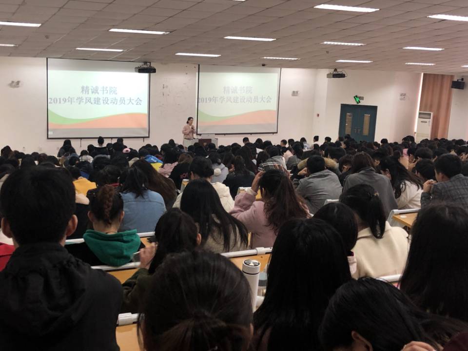 3月8日中午,精诚书院于谨学楼D1教室召开了“精诚书院2019年学风建设动员大会”,宋晶晶老师担任主讲人,书院全体辅导员及2017级、2018级全体同学参加。