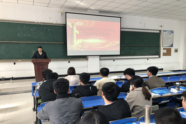 2019年3月6日中午,在党支部书记石中尼带领下,精诚书院学生第二党支部全体党员于新乡校区问学楼502教室,深入贯彻学习《中国共产党纪律处分条例》。
