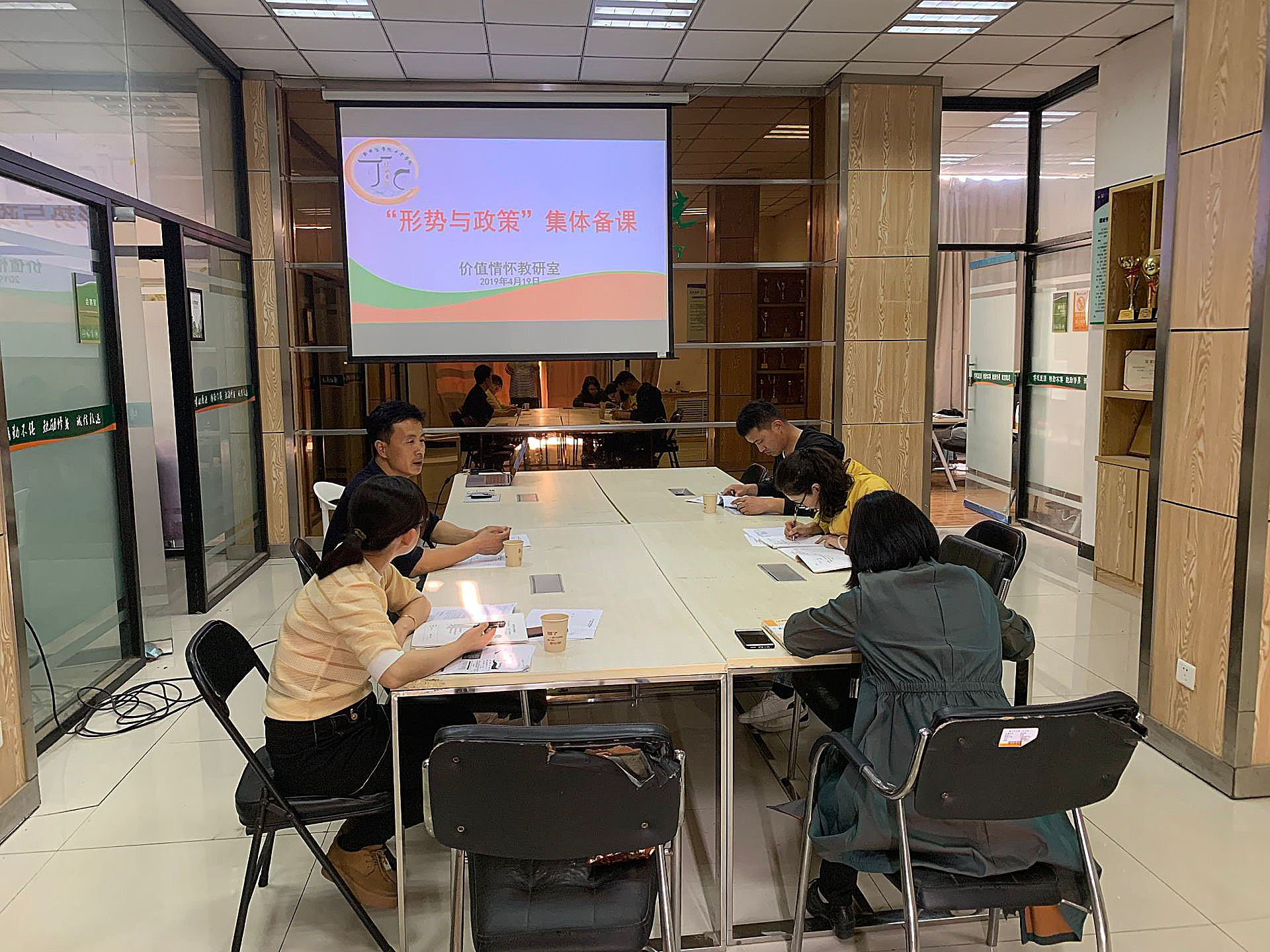 为提高教学效果,为教师提供合作、探讨、实践的途径,进行思想火花的碰撞、集体智慧的分享。4月19日,价值情怀教研室在精诚书院会议室举办了《形势与政策》集体备课活动。本次教研活动由价值情怀教研室主任王红英老师主持,崔向前书记、金靖芝书记、万建苗副书记、刘小磊副书记参与了本次集体备课。