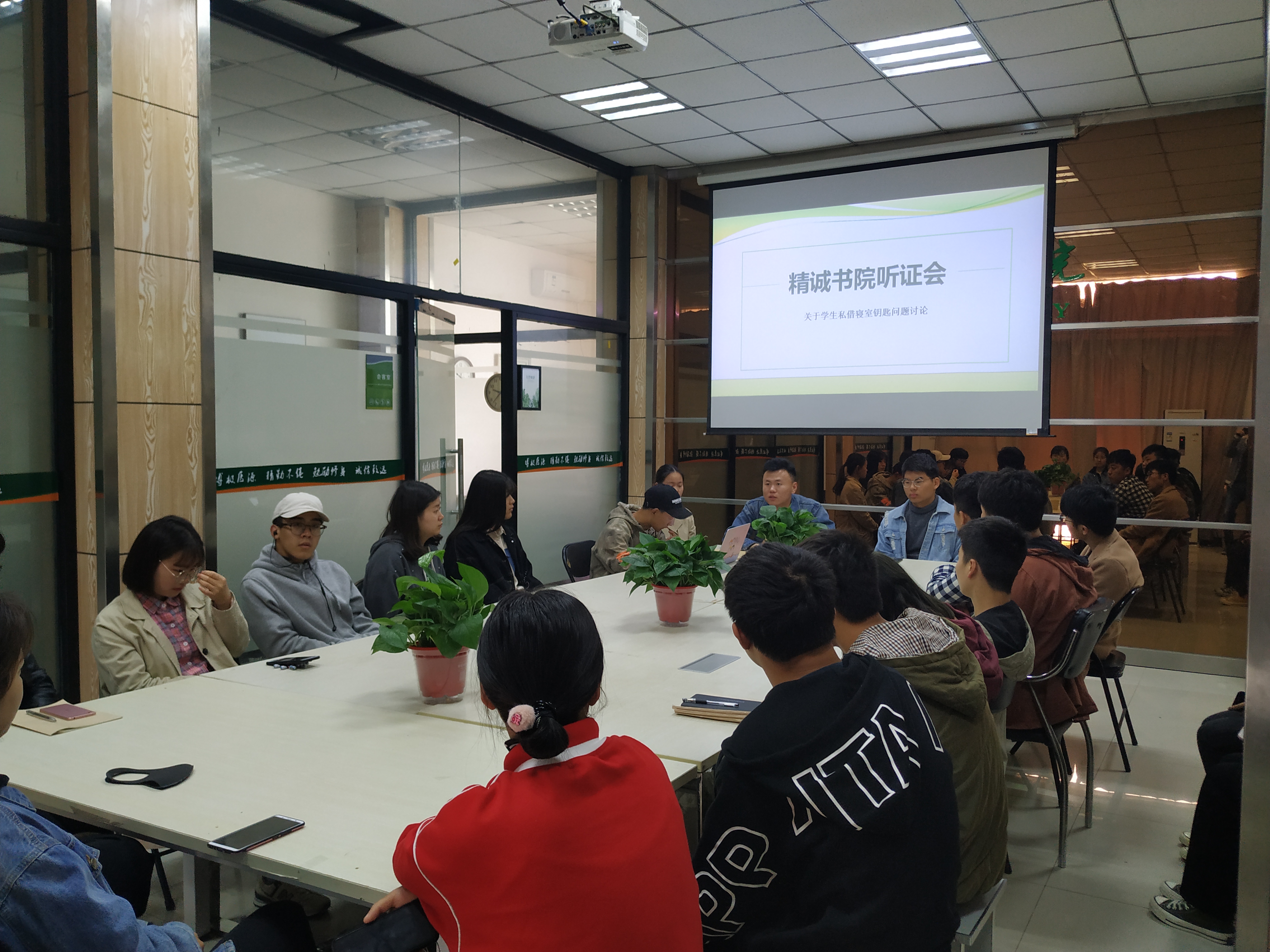 为进一步加强学生宿舍管理,保障学生财产安全及个人隐私,4月30日中午,精诚书院在会议室举办了关于宿舍管理问题的听证会,学生会干部和学生代表共36人参加。