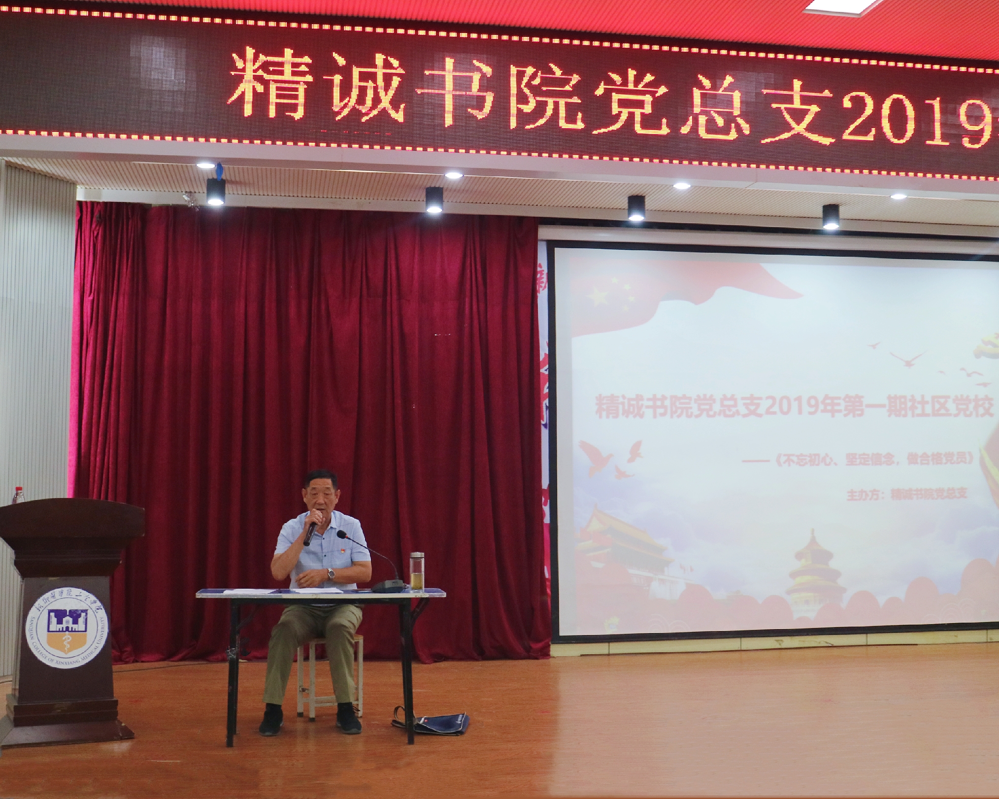 为深入学习贯彻习近平新时代中国特色社会主义思想,加强党员教育管理和入党积极分子培养工作,5月27日,精诚书院党总支在新乡校区问学楼学术报告厅举办以“不忘初心、坚定信念,做合格党员”为主题的2019年第一期社区党校。书院党总支副书记万建苗出席,精诚书院新乡校区教师党员、学生党员及入党积极分子代表百余人参加。