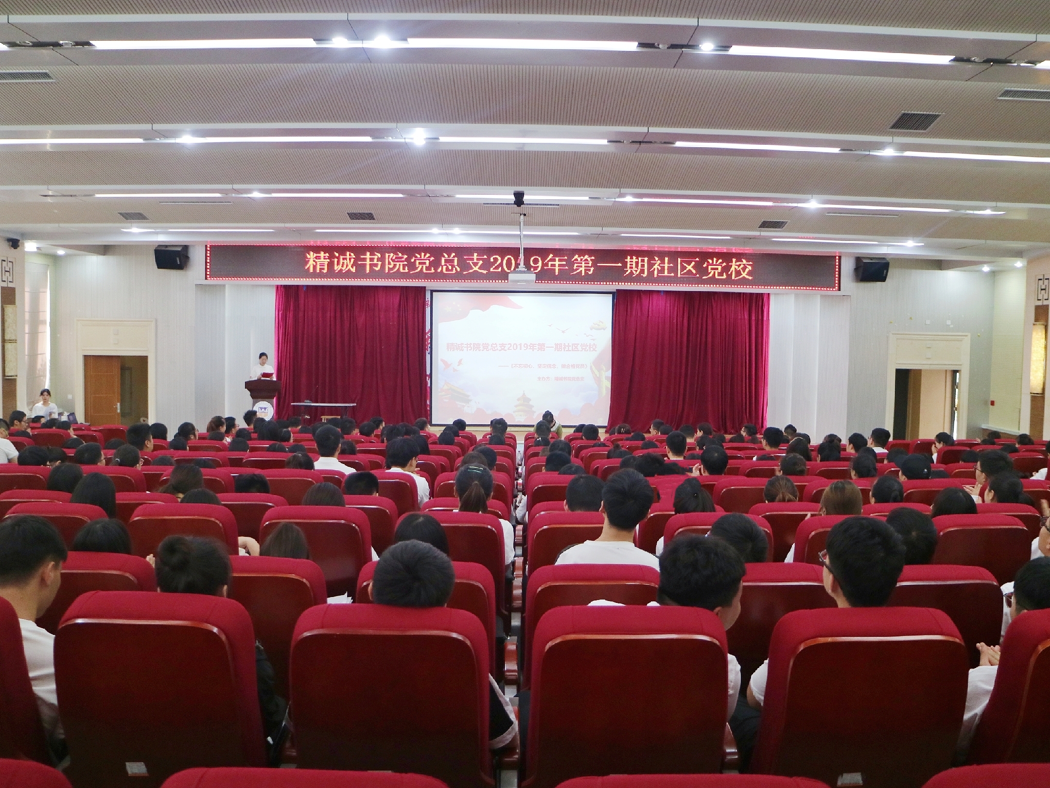 为深入学习贯彻习近平新时代中国特色社会主义思想,加强党员教育管理和入党积极分子培养工作,5月27日,精诚书院党总支在新乡校区问学楼学术报告厅举办以“不忘初心、坚定信念,做合格党员”为主题的2019年第一期社区党校。书院党总支副书记万建苗出席,精诚书院新乡校区教师党员、学生党员及入党积极分子代表百余人参加。