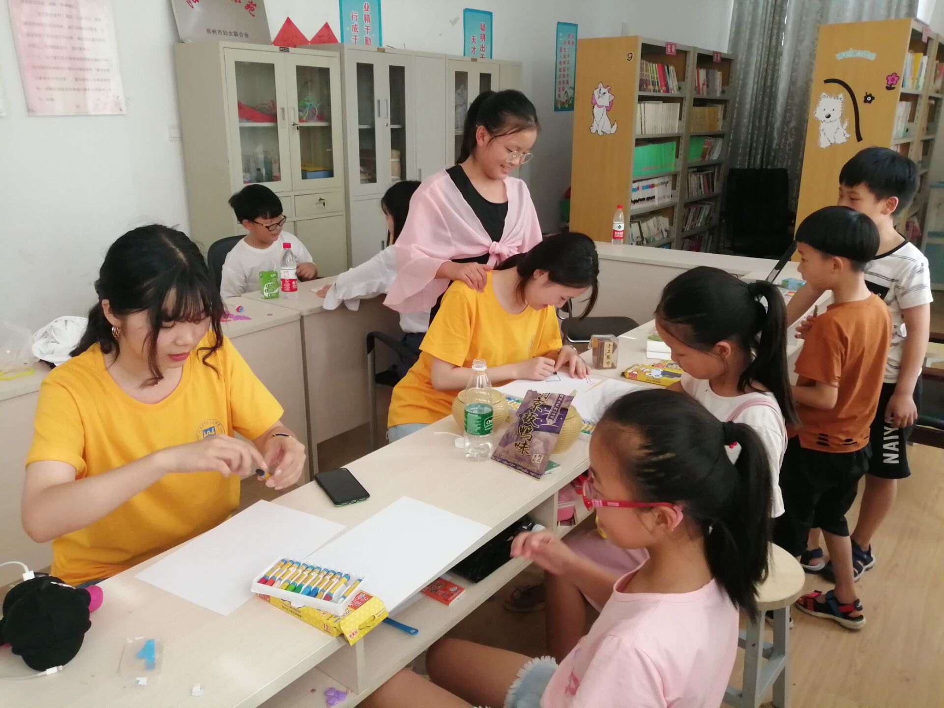 下午,队员们来到儿童之家陪社区里的孩子们玩游戏,下棋,并且给他们带了蜡笔、七巧板等小玩具,大朋友们陪着小朋友一起画画、做手工。整个过程,汗水与笑容夹杂在空气中,虽然天气很热,房间里也没有空调,仅有几个小风扇给孩子们降温,但是这一切都是那么的值得。在相处中大家看到了孩子们的天真活泼,同时也体会到家长、教师的不易。孩子们还小,他们可能不久就会忘记这段短暂的时光,可对于实践队员们来说,这是一次极其珍贵的回忆。