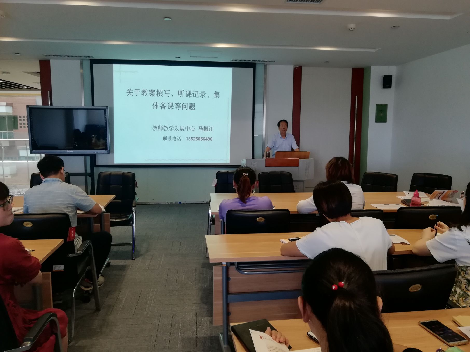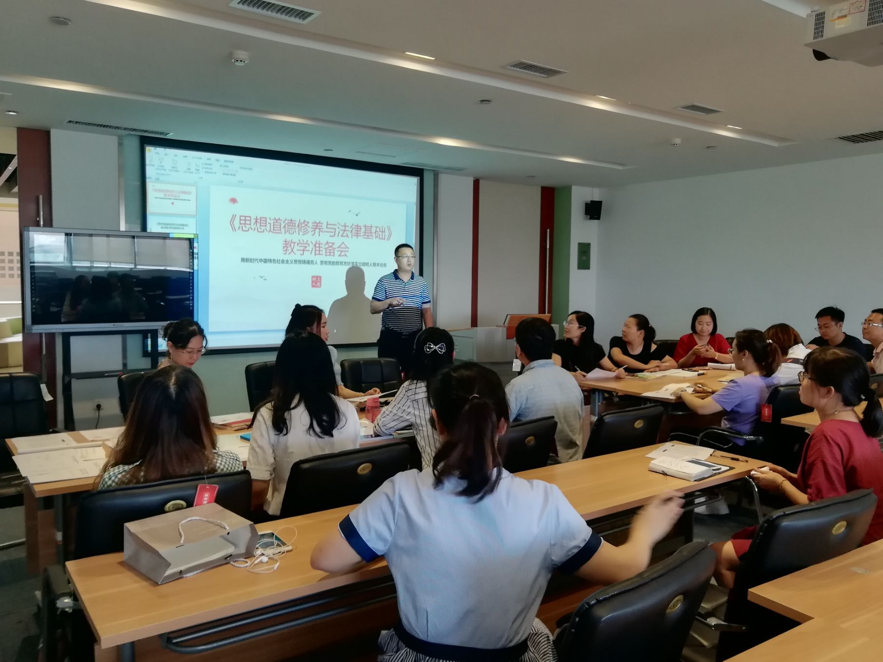 本次会议主要有两个内容,一是改革后,有关具体教学运行及教师授课情况的准备工作。二是邀请督导马振江老师为新学期《思想道德修养与法律基础》全体授课教师进行教学技巧培训。