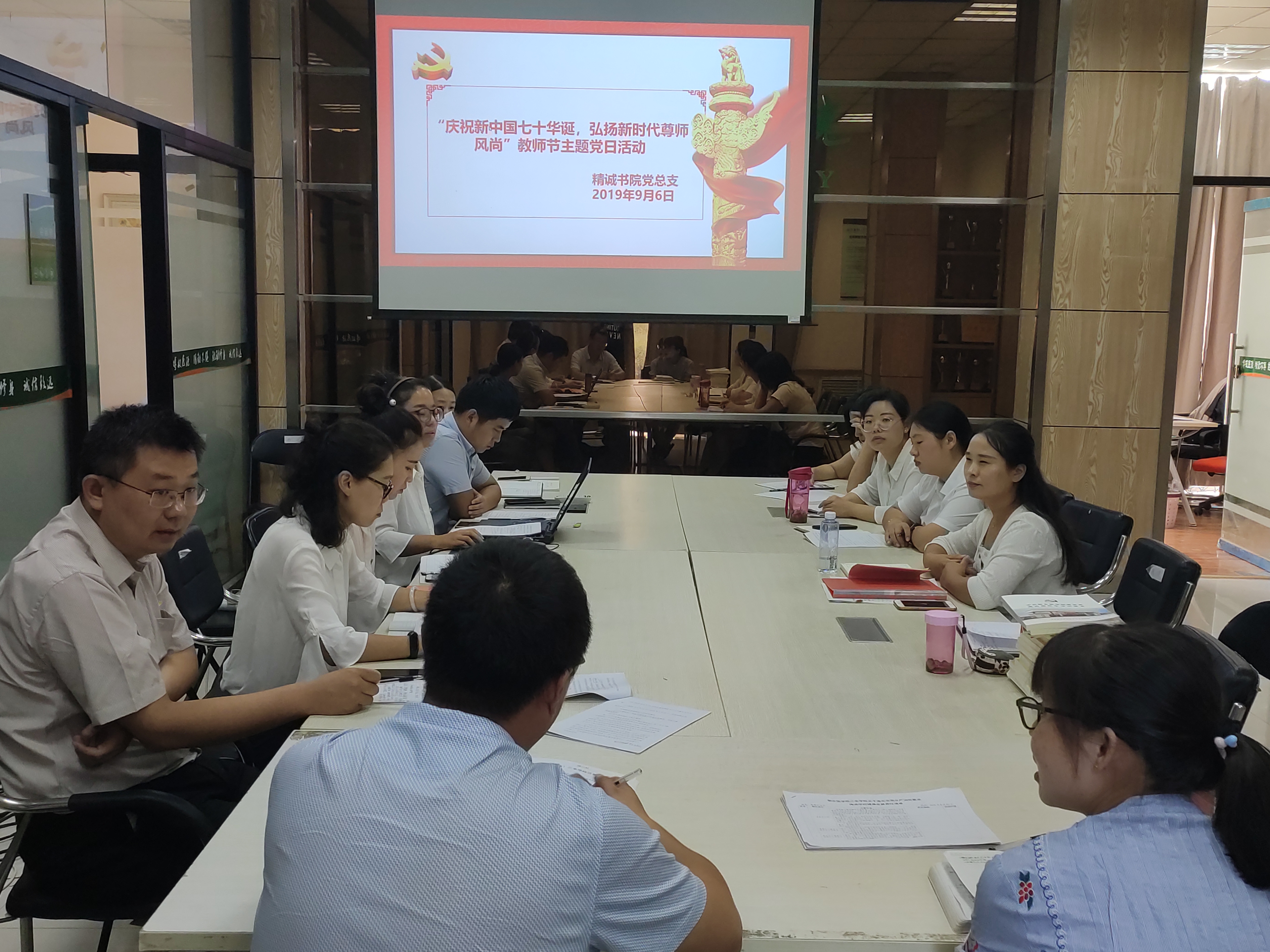 金秋九月,丹桂飘香。2019年9月6日-9月10日,为庆祝祖国七十周年华诞,在喜迎第35个教师节来临之际,精诚书院各党支部组织党员开展了以“庆祝祖国七十华诞,弘扬新时代尊师风尚”为主题的教师节主题党日活动。
