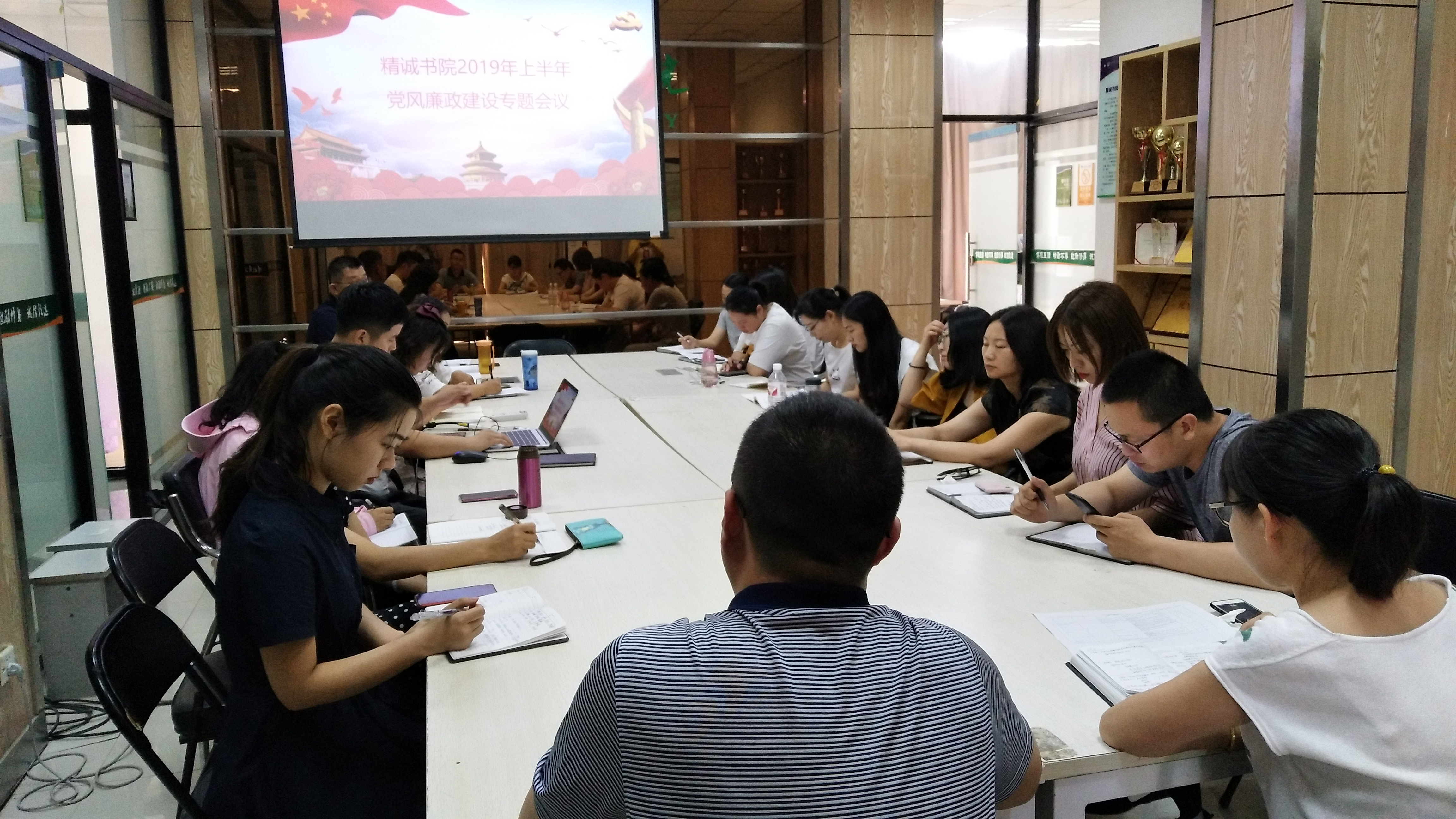 为深入贯彻党的十九大精神,落实学院全面从严治党新要求新部署,5月8日上午,精诚书院党总支于书院会议室,召开2019年度党风廉政建设工作部署会。会议由精诚书院党总支书记张新主持,副书记万建苗,以及全体教职工参会。