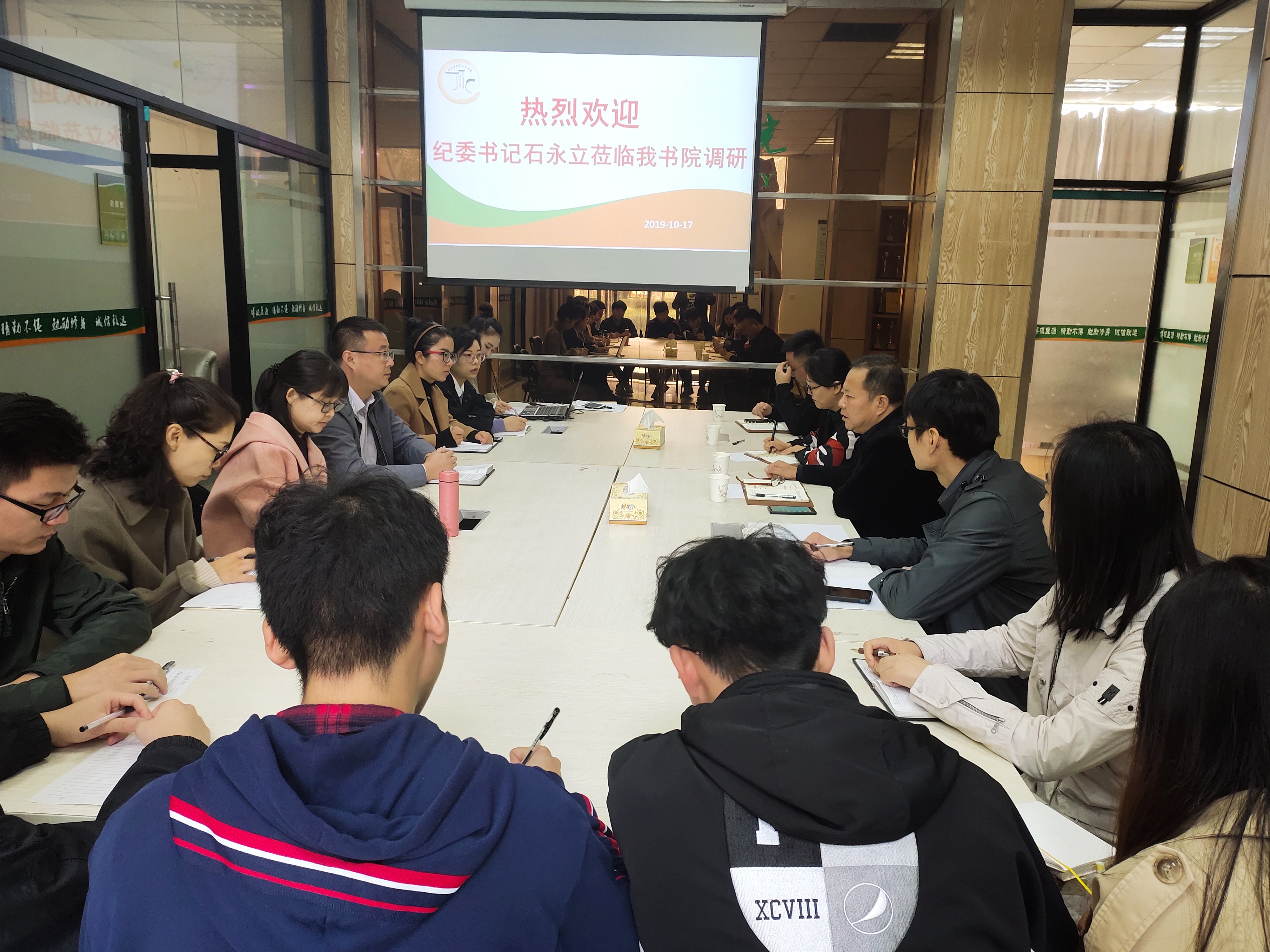 2018年10月17日上午,新乡医学院三全学院纪委书记石永立一行莅临精诚书院调研指导工作,书院党总支书记张新、副书记万建苗、书院党总支全体委员、辅导员老师及学生代表共同参加调研。
