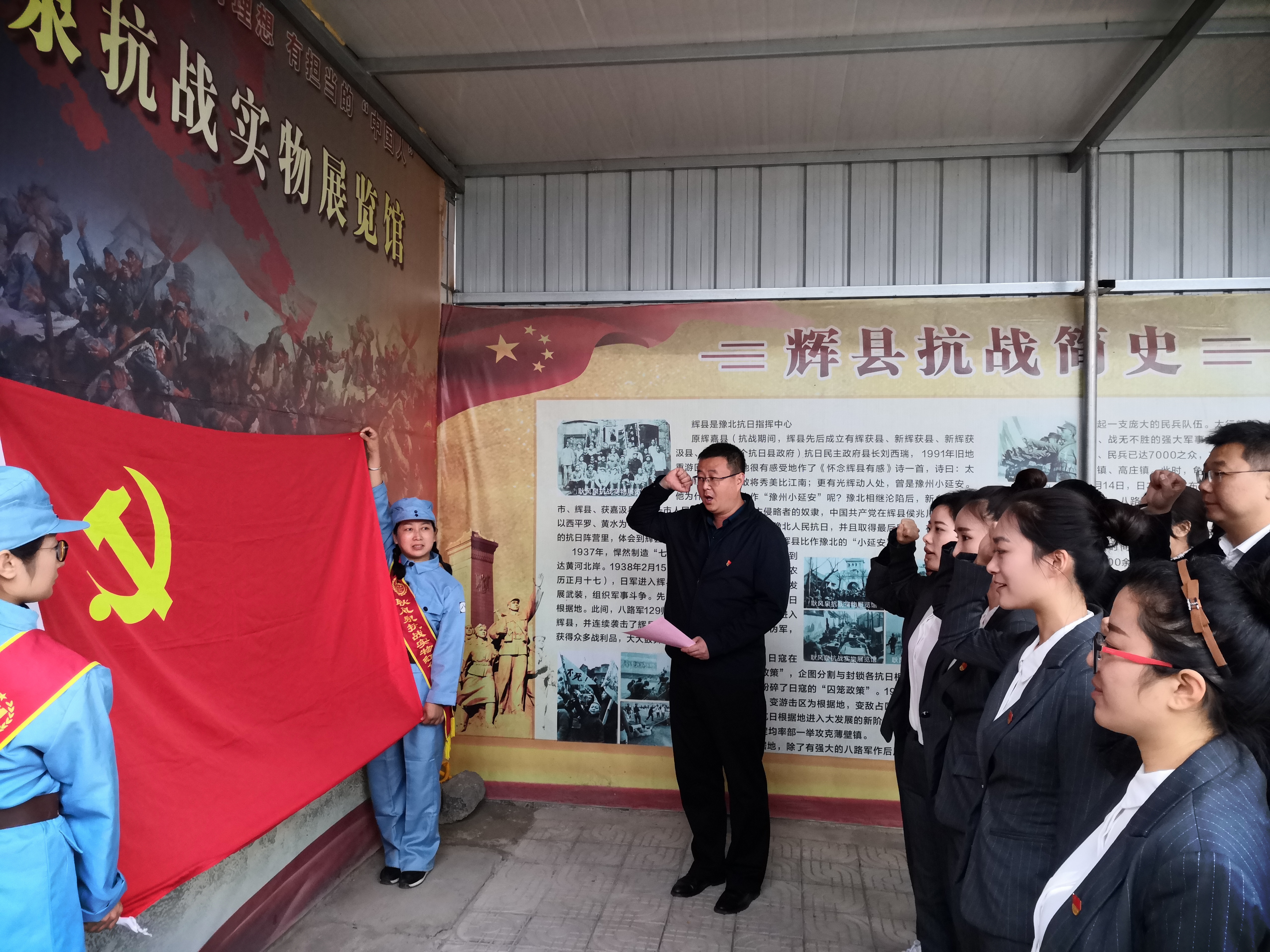 在展览馆内,三代军人耿风泉认真详细地为全体党员讲解辉县抗战简史、抗战文化墙、抗日英雄、以及抗战时期八路军、国军及日均的武器装备等展品。大家通过聆听耿老师的讲解,进一步了解了抗战历史,学习了革命先辈坚强的革命信念、坚定的革命意志、乐观的革命精神。在场党员们认真参观了馆内的珍贵抗战实物,重温波澜壮阔的革命历程,感受烈士们用热血和生命捍卫祖国的壮举,体会他们在艰苦卓绝环境下不屈不挠、不怕牺牲、勇往直前的爱国主义精神。一张张充满血泪的照片、一件件锈迹斑驳的武器、一位位铁骨铮铮的英雄人物,作为传承革命优良传统的重要载体,让在场党员们进行了一次心灵的洗礼。党员代表李高杰同志感慨到:我们要一定要珍惜眼前来之不易的生活,弘扬革命先辈不畏艰难险阻、勇于奉献的精神,继承党的优良传统和作风,不断加强自身修养,把爱国热情转化立足岗位、发奋工作的实际行动,为学校发展做出更大贡献。随后全体党员在党总支书记张新同志的带领下,面向党旗庄严宣誓,重温入党誓词,回顾入党初心。
