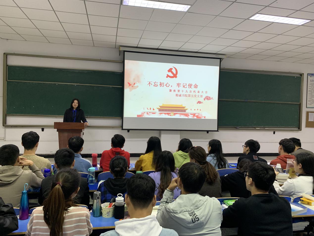 根据“不忘初心、牢记使命”的主题教育安排,按照“支部书记讲党课”工作要求,10月18日下午,精诚书院第五党支部书记王春平在问学楼302教室开展了“不忘初心,牢记使命——聚焦十九大”主题党课会议,第五党支部全体党员参加本次会议。