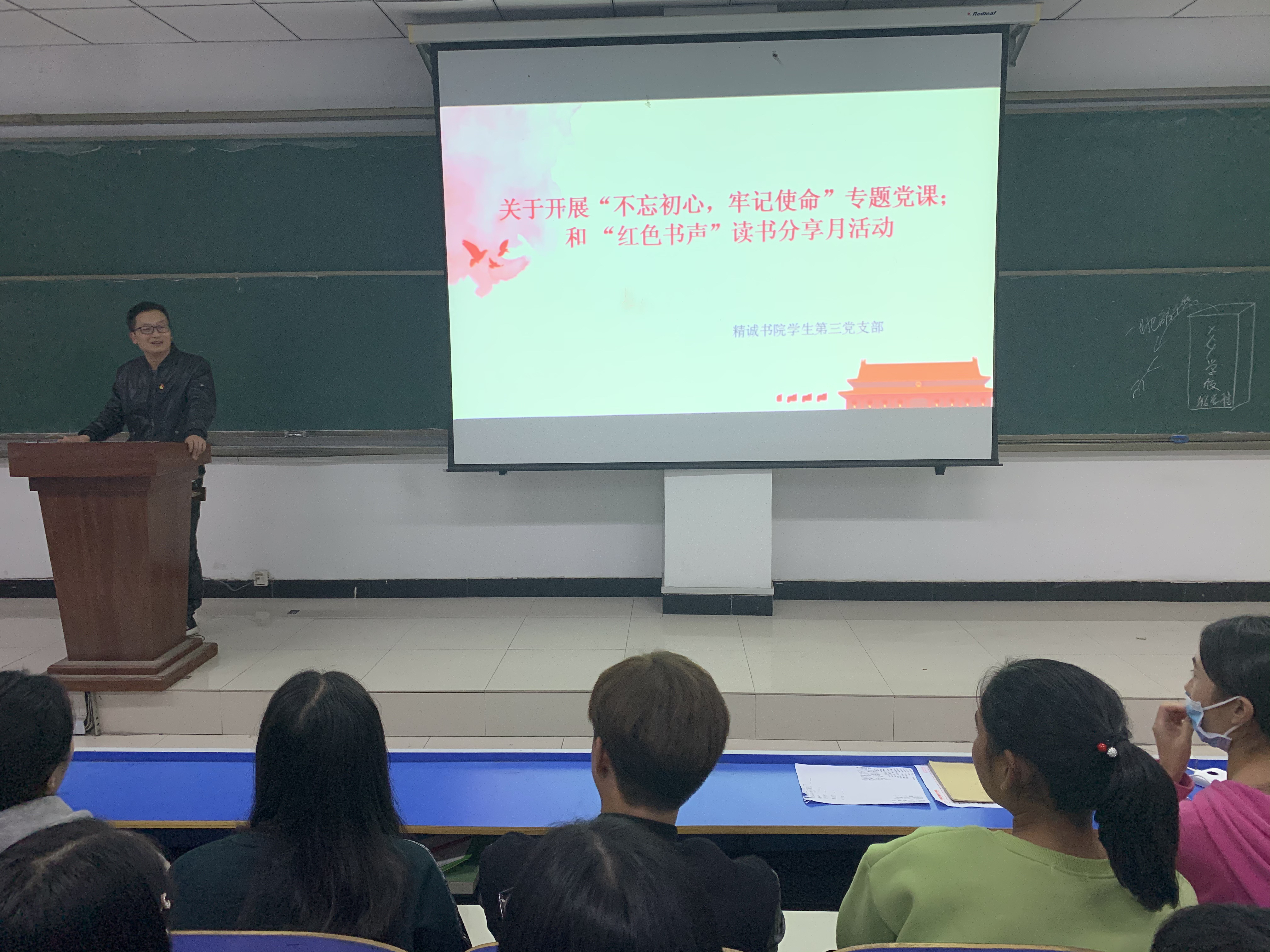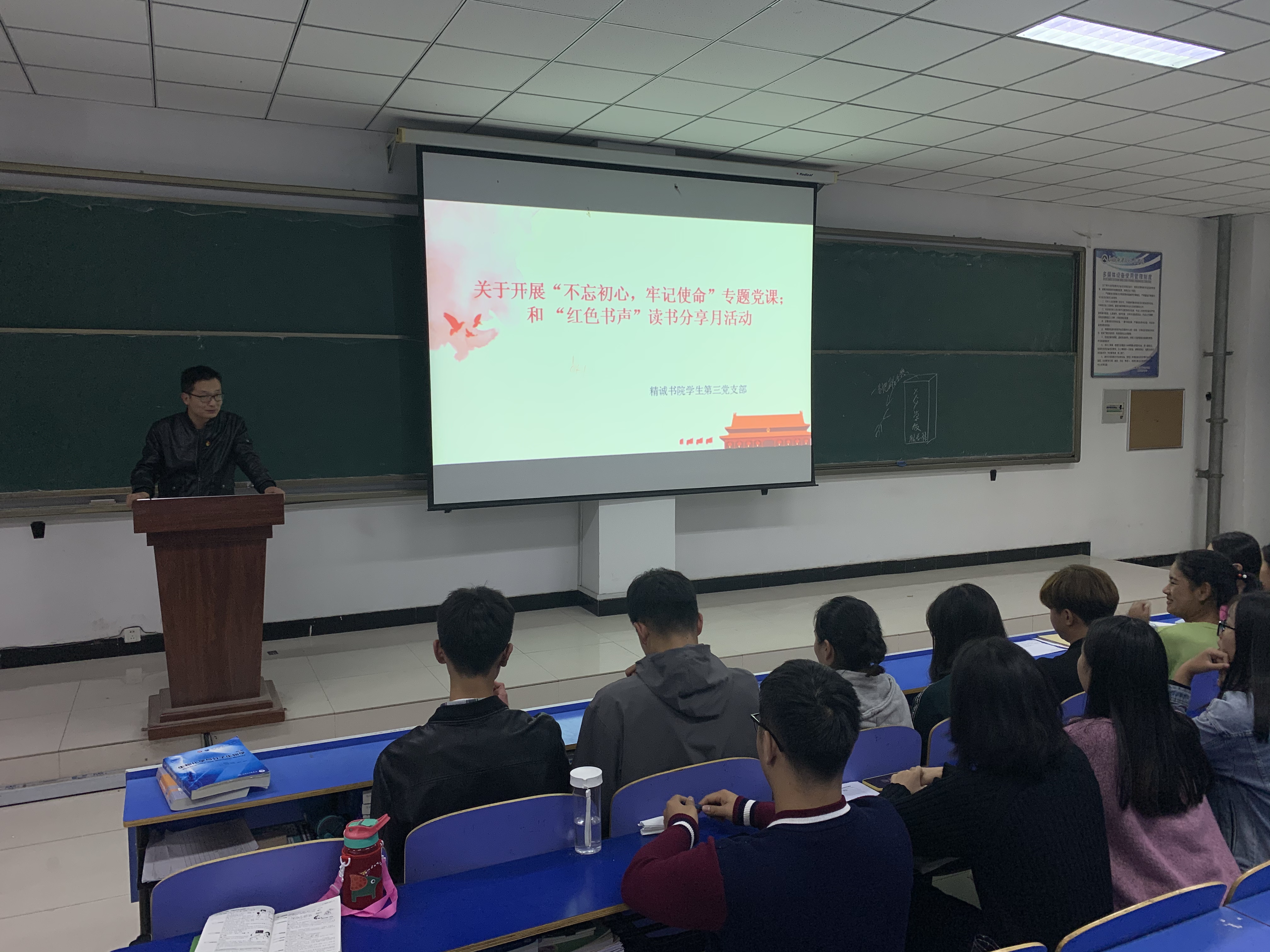 精诚书院学生第三党支部根据“不忘初心、牢记使命”主题教育要求,按照“支部书记讲党课”的工作安排,由支部书记姚志博于2019年10月15日在问学楼301教室开展了“不忘初心 牢记使命”的专题党课。