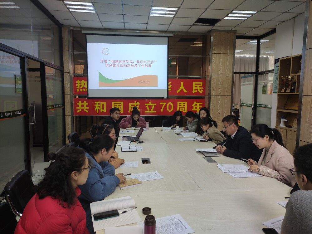 张新书记在会议中,明确了本次学风活动的指导思想工作目标,在活动的部署上重点强调了实施步骤,整体分为三个阶段,首先,做好前期宣传动员工作。书院微信公众号、网站等形式宣传本次学风建设活动,以辅导员为单位开展学生学风动员大会,通过班会将本次活动精神传达到每名学生,使学生生明确学风建设活动的目的、意义。书院层面围绕“创建优良学风,我们在行动”的活动主题,制定本次学风建设的活动方案。其次,活动实施阶段,根据学风建设活动方案,通过动员大会、主题班会、倡议书、学习经验交流会、家校联动情况、学习型班级建设等多种形式进行。最后,活动结束后,各辅导员对本班此次活动参与整体情况进行总结,发现典型、查找不足,对本次活动中的经验进行总结和讨论同时形成书面报告。