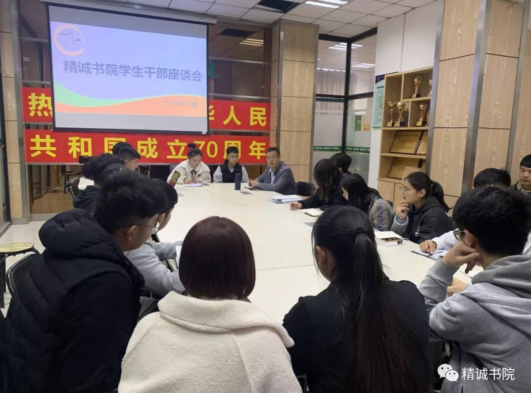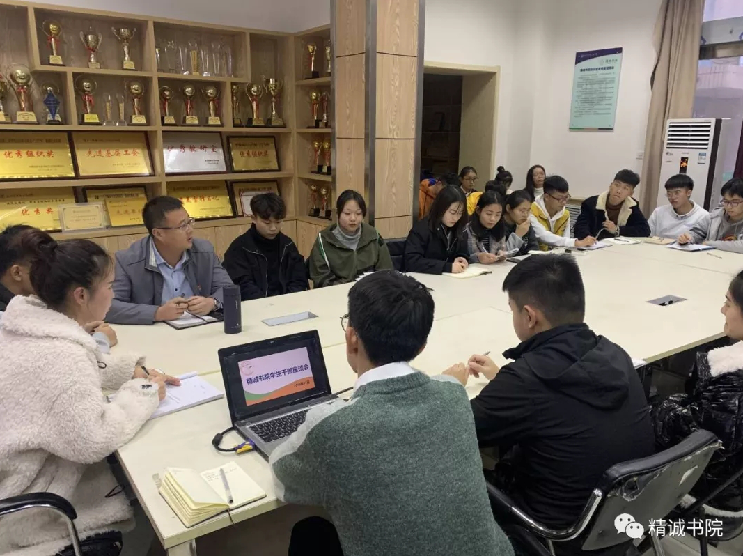 为更好的发挥学生干部的骨干作用、提升学生干部的管理质量,11月18日,精诚书院于书院会议室开展“书院学生干部目前存在问题以及对今后的工作建议和意见”的调研会。精诚书院党总支书记张新、院务主任金潇以及20余名学生干部共同参加。
