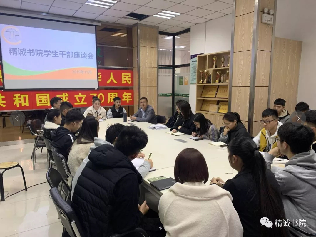 为更好的发挥学生干部的骨干作用、提升学生干部的管理质量,11月18日,精诚书院于书院会议室开展“书院学生干部目前存在问题以及对今后的工作建议和意见”的调研会。精诚书院党总支书记张新、院务主任金潇以及20余名学生干部共同参加。