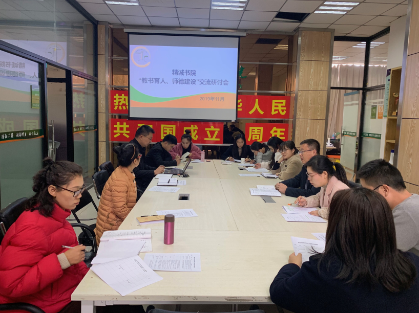 为推进书院师风建设,加强学风管理及督查力度,11月29日,精诚书院特于精诚书院办公室举办“教书育人,师德建设”主题交流研讨会。精诚书院党总支全体成员参与本次会议。