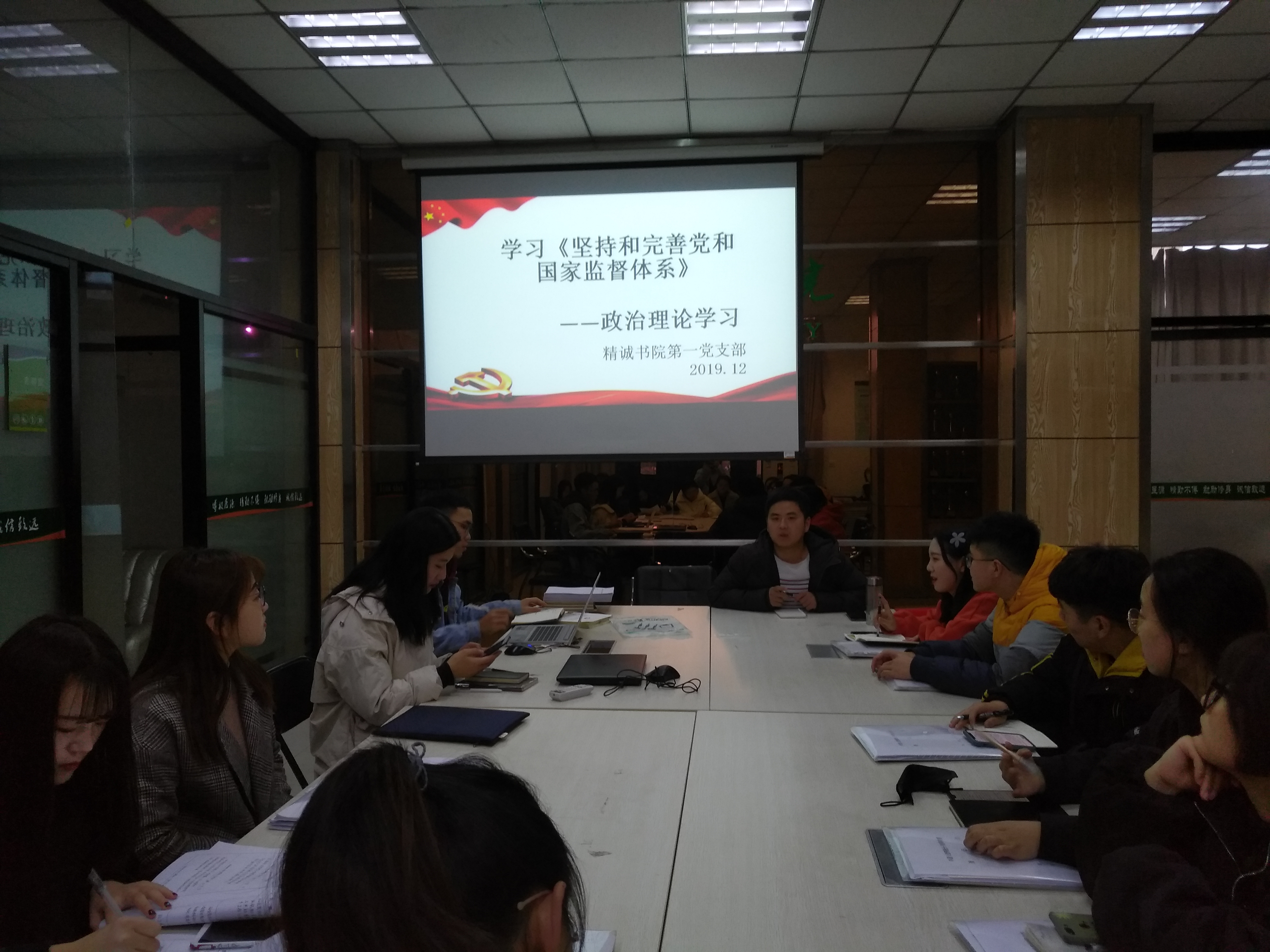 2019年12月10日,精诚书院第一党支部召开12月份政治理论学习会议。第一党支部全体师生党员于精诚书院办公室参加会议。会议由支部书记张阳主持。