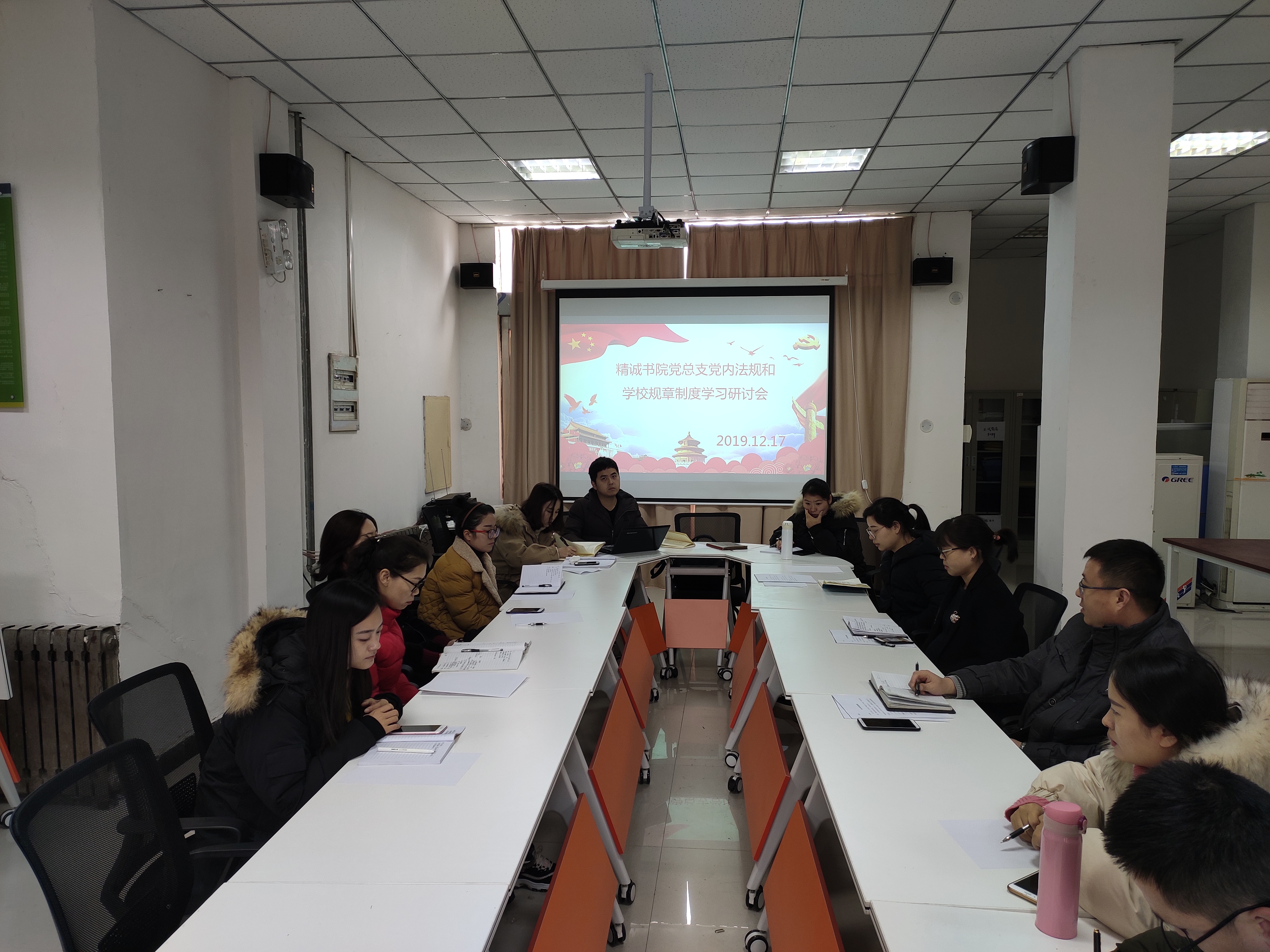 2019年12月17日,精诚书院党总支在党员活动室召开了党内法规和学校规章制度学习研讨会,会议由精诚书院党总支书记张新主持,全体教职工党员参加。