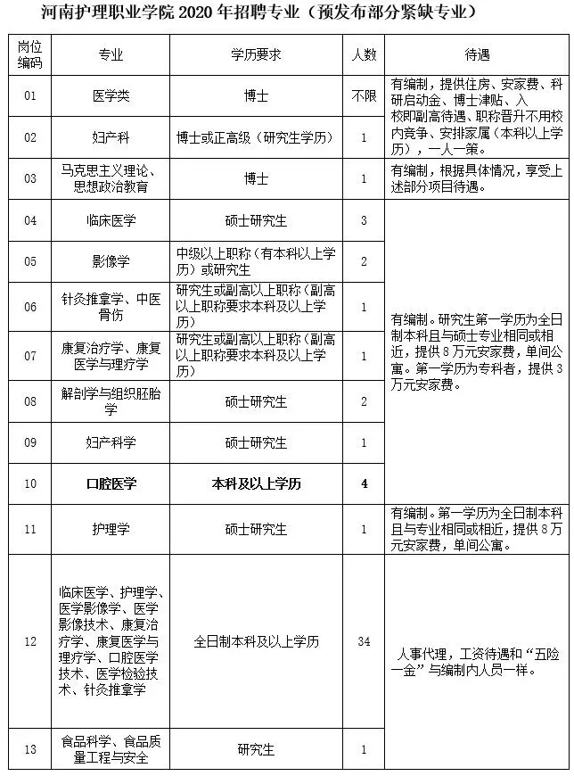 有意报名者请填写《河南护理职业学院2020年应聘人员预报名表》(见附件2点击阅读原文),发送到rsk2948755@163.com邮箱(邮件及附件2命名格式为:岗位编码+姓名),并密切关注我院官网招聘公告。