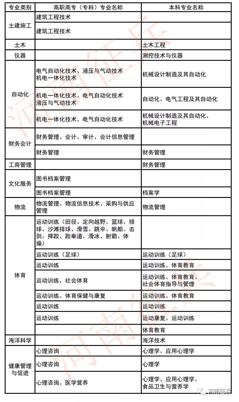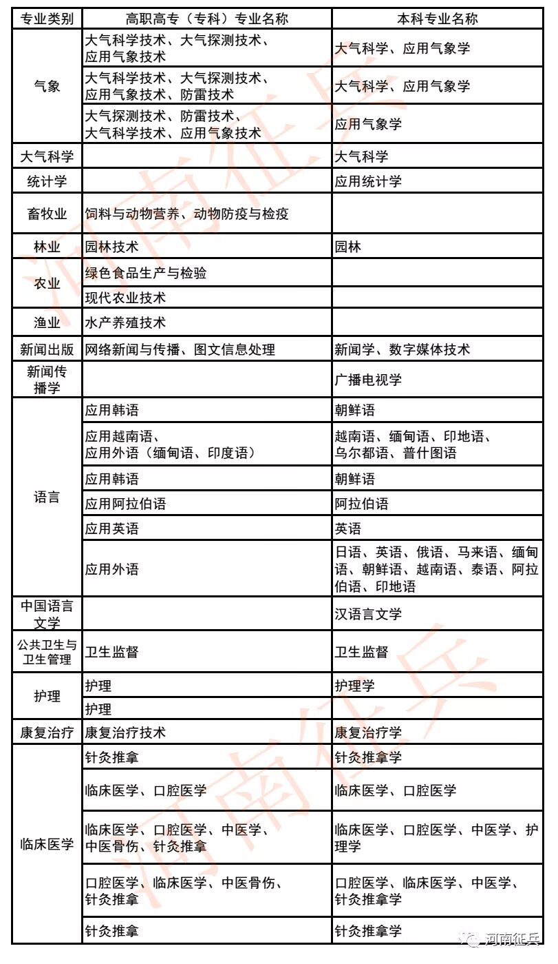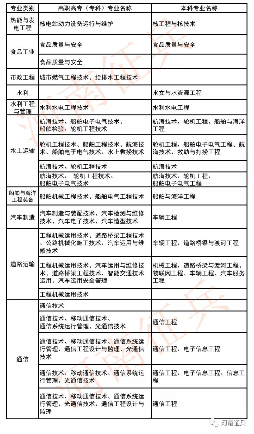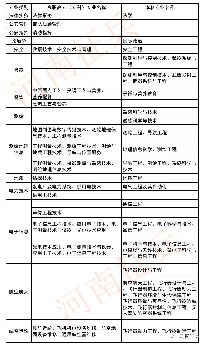 招收具体专业见本文末,也可登录“全国征兵网”查询,或者关注并进入河南省人民政府征兵办公室微信公众号“河南征兵”(微信号:henanzhengbing),点击下方“联系征办”进入“招收士官专业”查询。