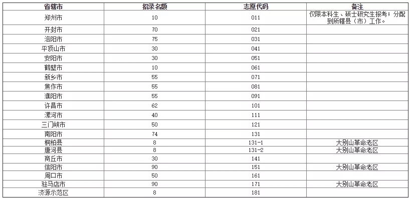 各省辖市(含济源示范区,下同)招录名额见附件1。