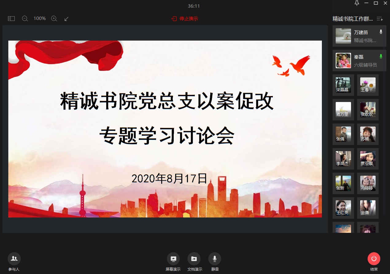 8月17日党总支通过企业微信视频会议的方式召开了以案促改专题座谈会,全体教职工党员结合个人工作实际,围绕典型案件,查找自己存在哪些薄弱环节,下步将如何改进?个人在工作中遇到哪些诱惑,自己是如何处理的?以及对学院书院党风廉政建设有何建议等问题交流了经验,分享了学习体会,明晰了辅导员工作中存在的廉政风险点,为消除违纪行为提供了思路和办法。