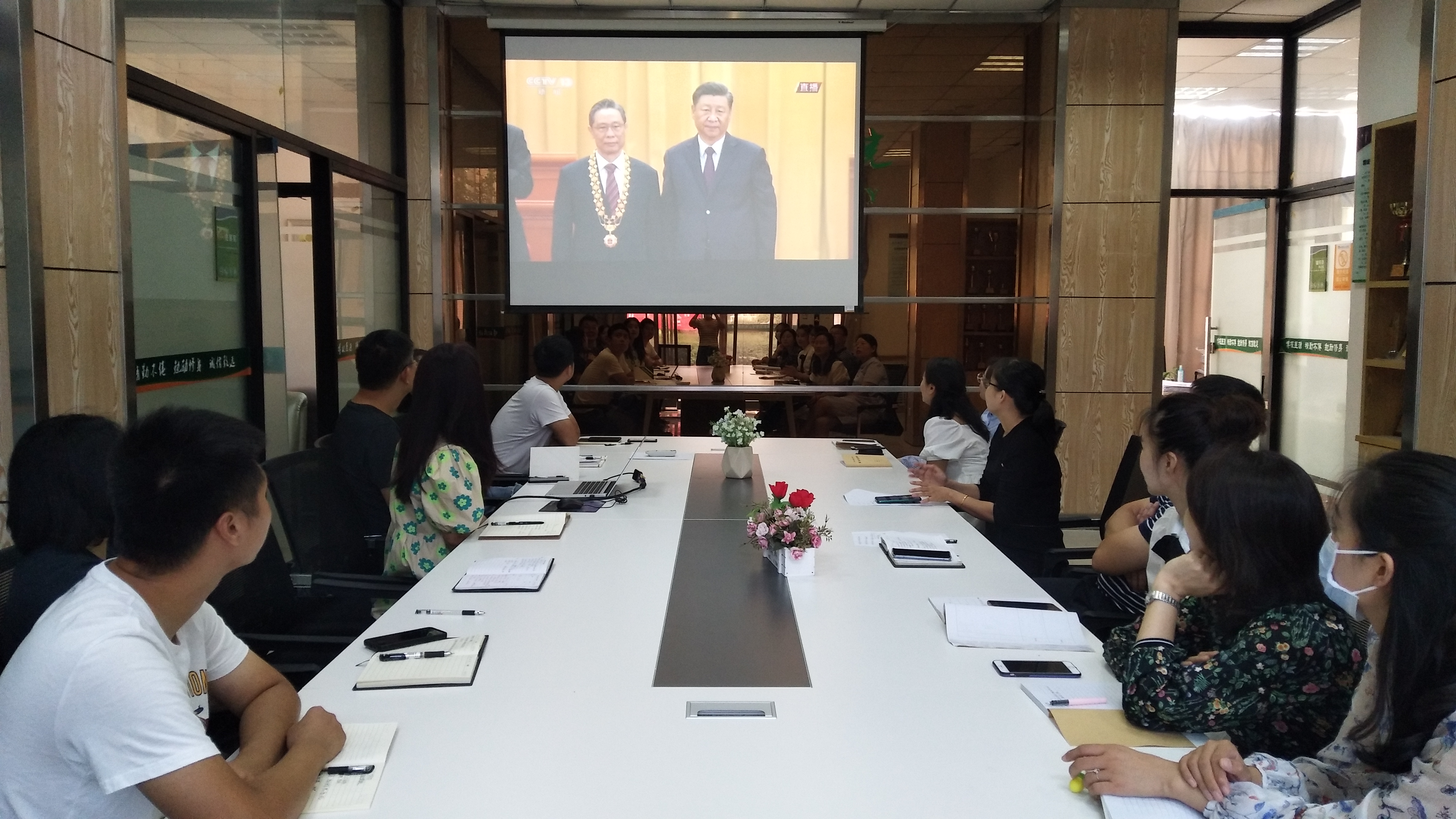 大会伊始,平原校区会议室全体教职工向在抗击新冠肺炎疫情中牺牲烈士和逝世同胞默哀,寄托哀思,之后大家认真观看颁奖盛况,学习习近平重要讲话,聆听先进人物事迹,会后全体师生积极发表感言。