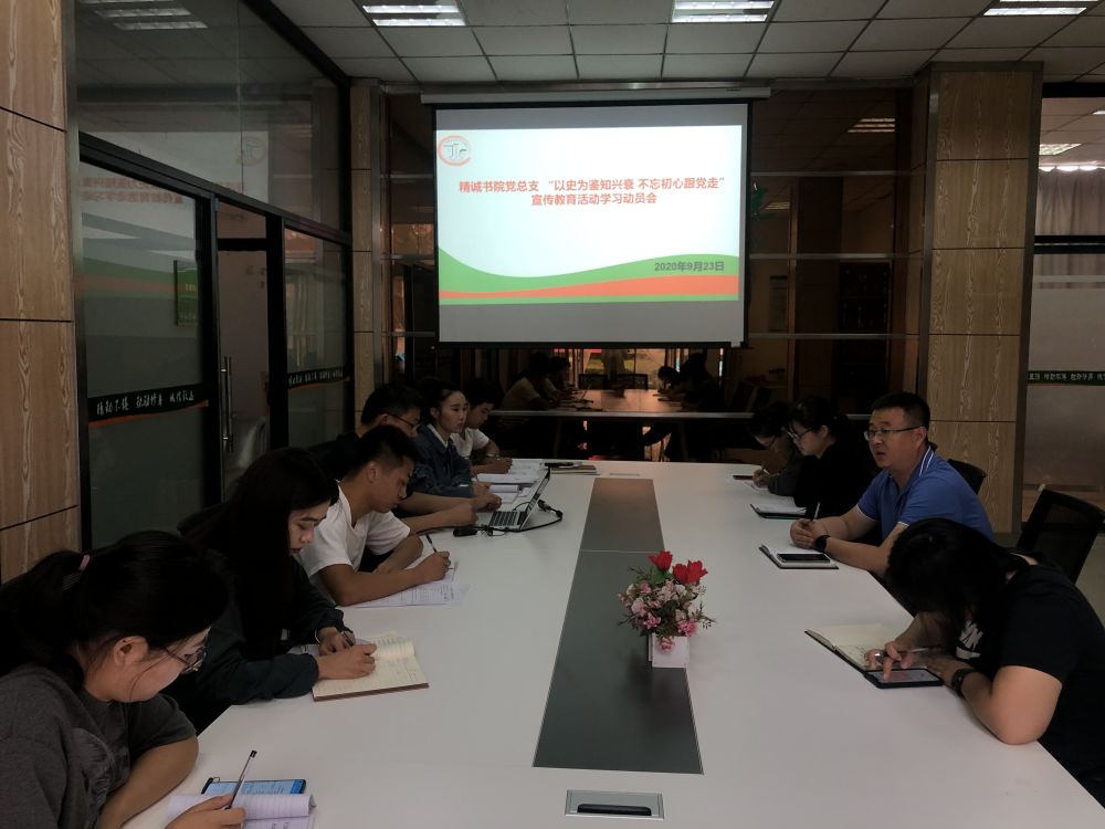 为深入学习贯彻落实习近平总书记关于党史、新中国史、改革开放史、社会主义发展史学习及新冠肺炎疫情防控工作的重要讲话和指示精神,持续深化爱国主义教育,按照教育部,省委高校工委、省教育厅、学院党委有关文件精神,精诚书院党总支9月21日于平原新区会议室召开“以史为鉴知兴衰、不忘初心跟党走”宣传教育活动学习动员会,会议由张新书记主持。