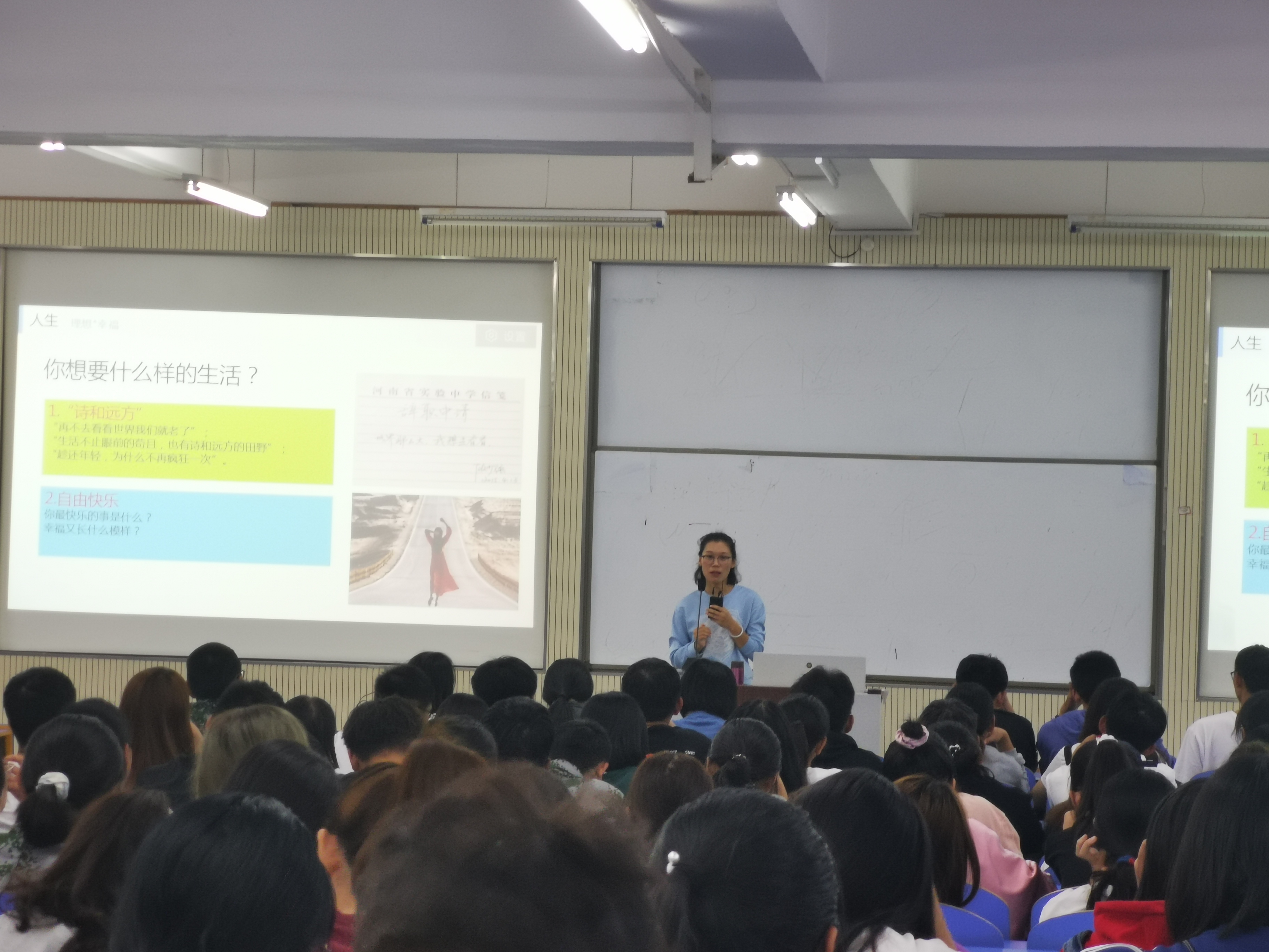 活动伊始,王红英老师就“成长”话题切入,引导学生要树立崇高理想,因为“没有崇高的理想信念,精神上就会‘缺钙’,就会得‘软骨病’”。王老师从纪录片《冲天》、《无问西东》中英雄人物讲起,回望屈辱历史,追忆民族英雄,警醒大家要牢记美好生活的来之不易。勉励大家,大学生要有作为中华儿女的骄傲和自豪,爱党爱国,树立坚定的政治方向和远大的人生志向,将实现“两个一百年”奋斗目标、实现中华民族伟大复兴中国梦的历史使命内化为担当的自觉,外化为实际的行动,从容自信、坚定自励。