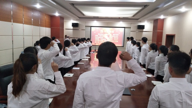 会议伊始,全体人员起立庄严奏唱国歌。接着,万建苗副书记以新冠疫情防控狙击战为引,从“维护大局讲党性”、“大事难事勇担当”、“干事创业守纪律”、“争做新时代优秀党员”四个模块展开讲述,将党员的理想信念与责任担当通过真实的案例生动地讲述。她讲道:作为一名新时代的党员,要坚守信仰、胸怀大局、勇于担当,把自己的理想融入到实现中华民族伟大复兴的中国梦之中,不忘入党初心,不负医者使命,做一名有家国情怀的医学生。随后,万书记为新生党员佩戴党徽,她寄语道:“党徽戴在胸前,就要时刻亮出党员身份,时刻提醒自己要牢记誓言,尽到党员义务,做到吃苦在前,享受在后。”最后,全体参会人员面对党旗重温入党誓词,铿锵有力的宣誓声响彻校园,所有人都深受感染、倍受教育。