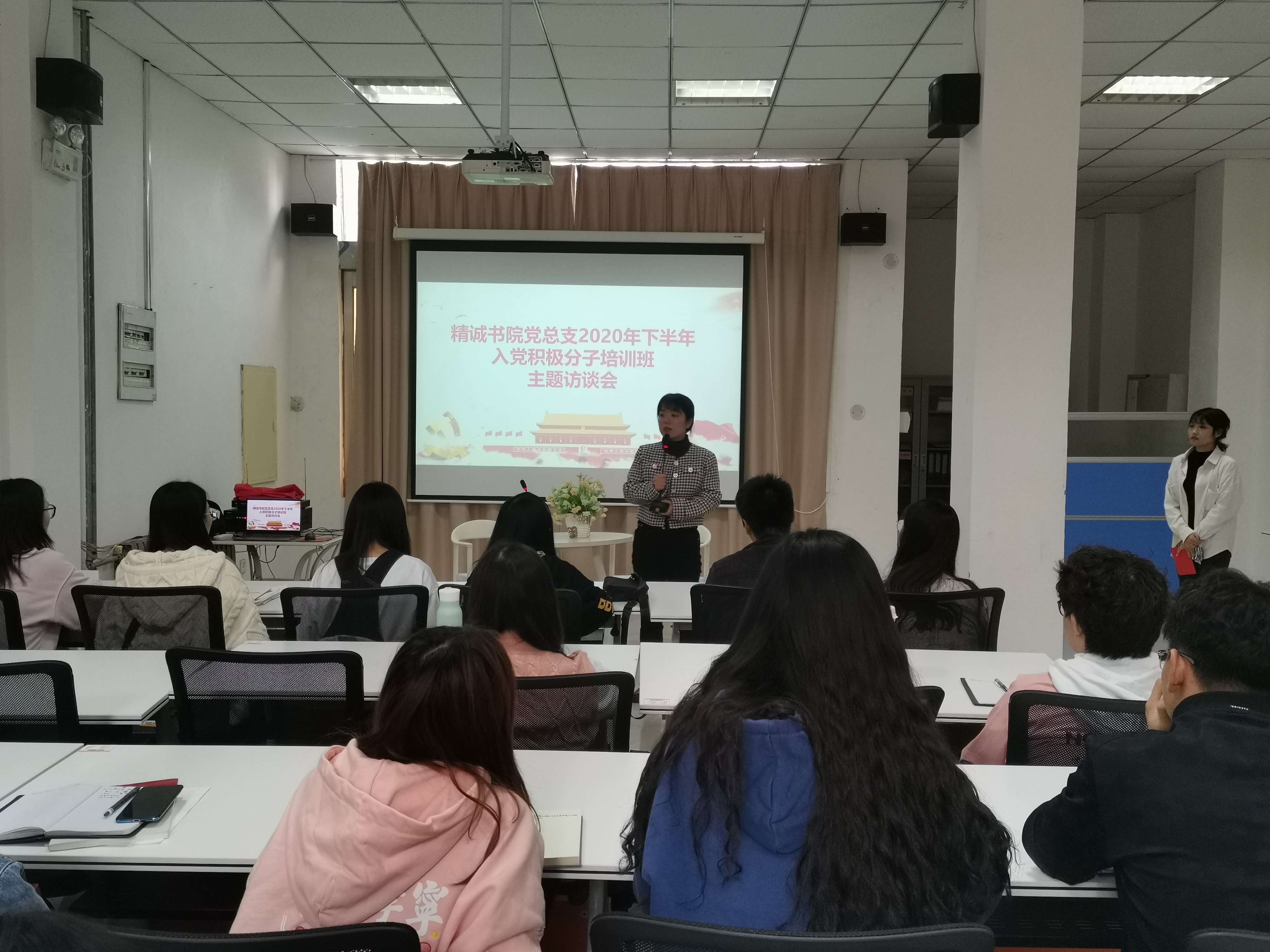 为深入学习贯彻习近平新时代中国特色社会主义思想,引导大学生入党积极分子掌握党的基本路线、基本方针、基本政策以及党的性质、纲领、宗旨等,进一步提高政治觉悟,精诚书院党总支组织入党积极分子于10月17日-18日参加了学院组织的2020年上半年入党积极分子培训班。