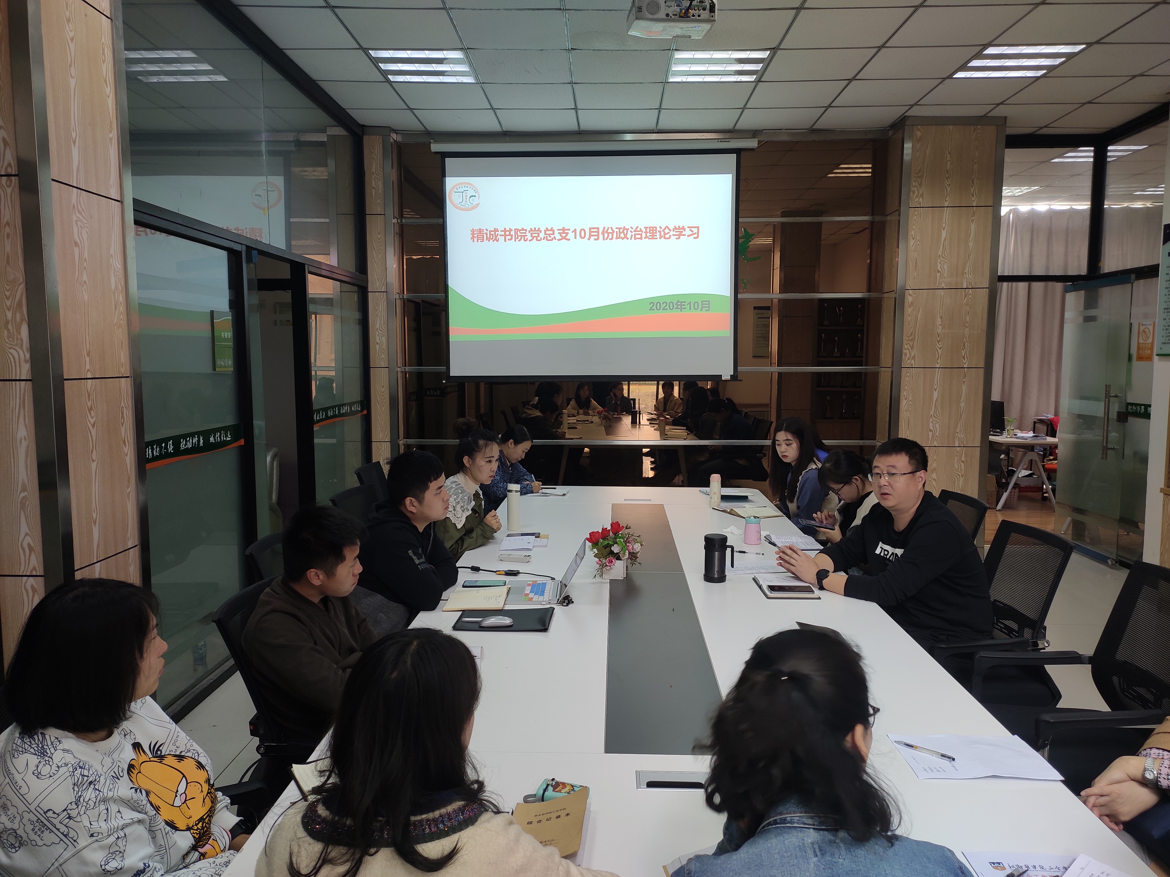 为深入开展学院“以史为鉴知兴衰 不忘初心跟党走”党史、新中国史、改革开放史、社会主义发展史及新冠肺炎疫情防控知识宣传教育活动,10月7日精诚书院党总支在平原校区会议室召开10月份政治理论学习会,学习专题内容《中国共产党的九十年》。会议由党总支书记张新主持,全体教职工党员参加。