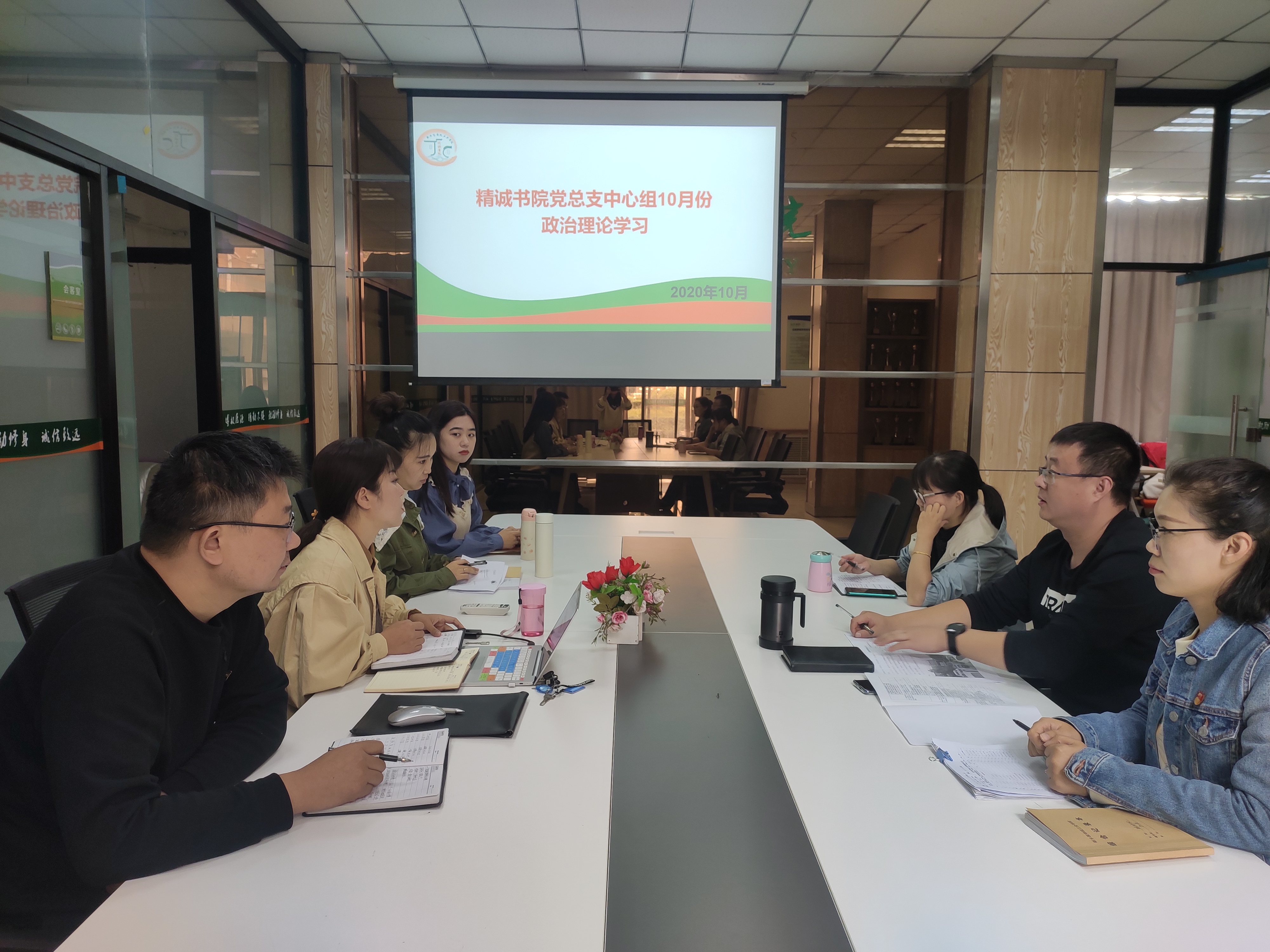 为深入开展学院“以史为鉴知兴衰 不忘初心跟党走”党史、新中国史、改革开放史、社会主义发展史及新冠肺炎疫情防控知识宣传教育活动,10月7日精诚书院党总支中心组在平原校区会议室召开10月份政治理论学习会,学习专题内容《中国共产党的九十年》,会议由党总支书记张新主持,中心组全体成员参加。