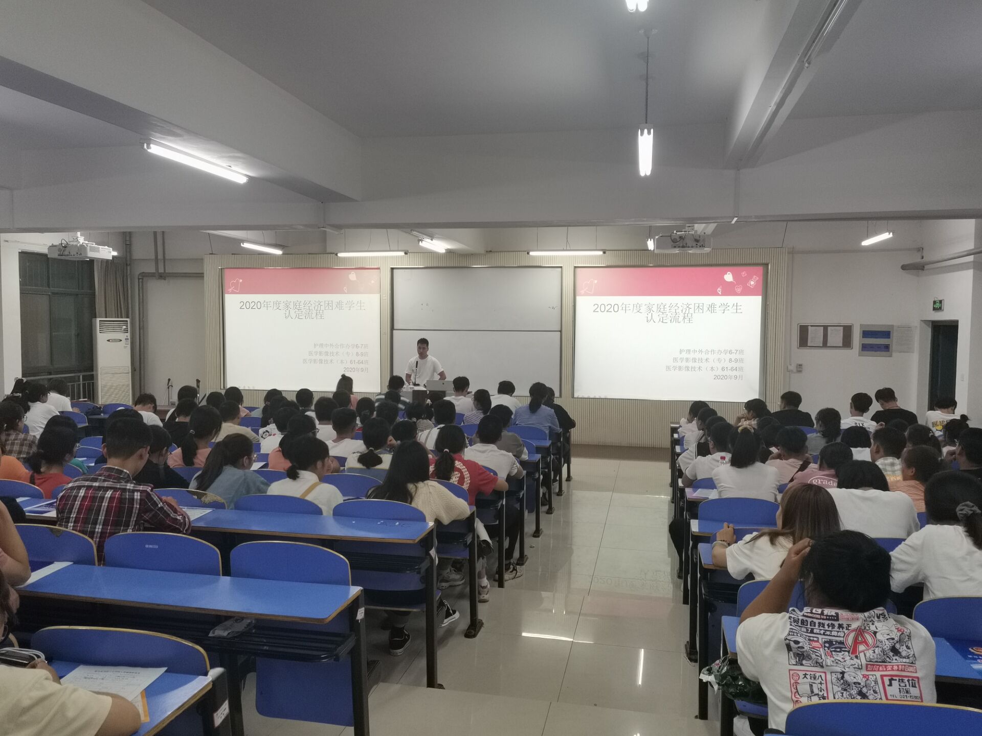 新学期伊始,精诚书院积极组织开展2020级新生资助政策“两节课”活动。各新生辅导员组织全体师生以大班班会的形式向同学们进行资助政策宣传,宣传对象为我书院2020级全体新生。
