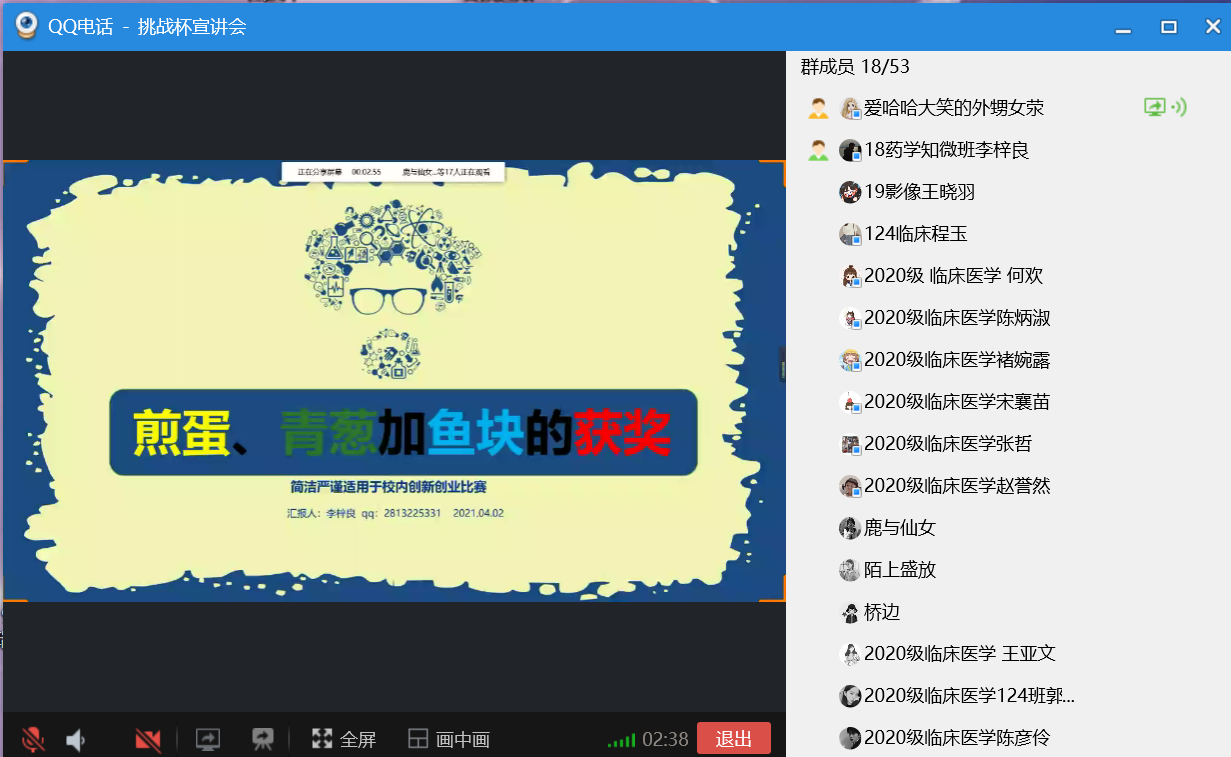 会后,2019级医学影像技术专业张博文同学表示:“本次宣讲会让我对挑战杯的了解更深了一步,还让我意识到自己组建团队时一定要对自我定位清晰,脚踏实地,勇敢地迈出第一步。”