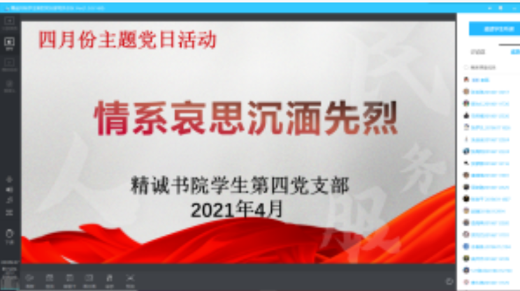 又是一年清明时,慎终追远祭英烈。4月5日,精诚书院学生第四党支部以线上形式开展“情系哀思,沉湎先烈”清明节主题党日活动。