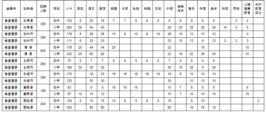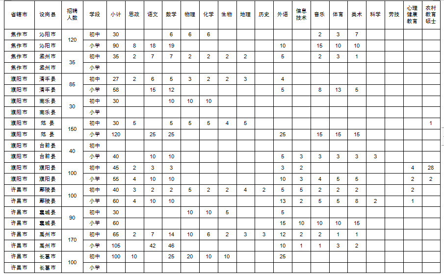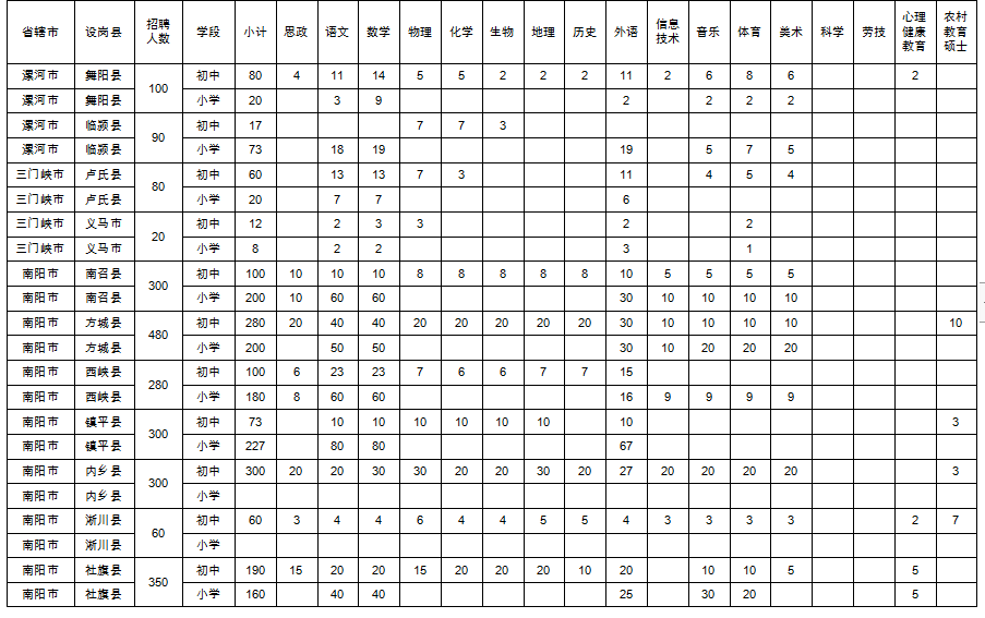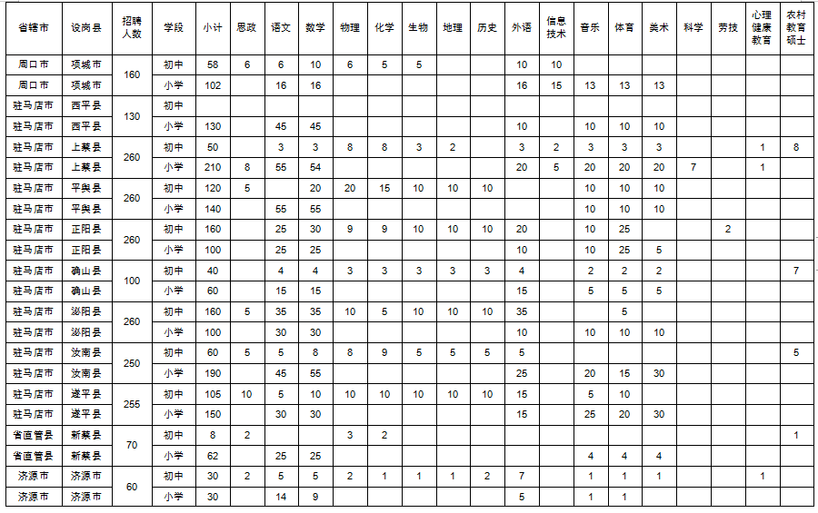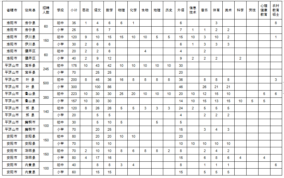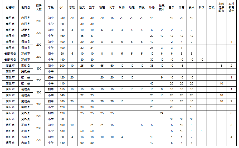 2021年全省共招聘特岗教师18000名。具体岗位设置参见《河南省2021年特岗教师招聘岗位设置》。