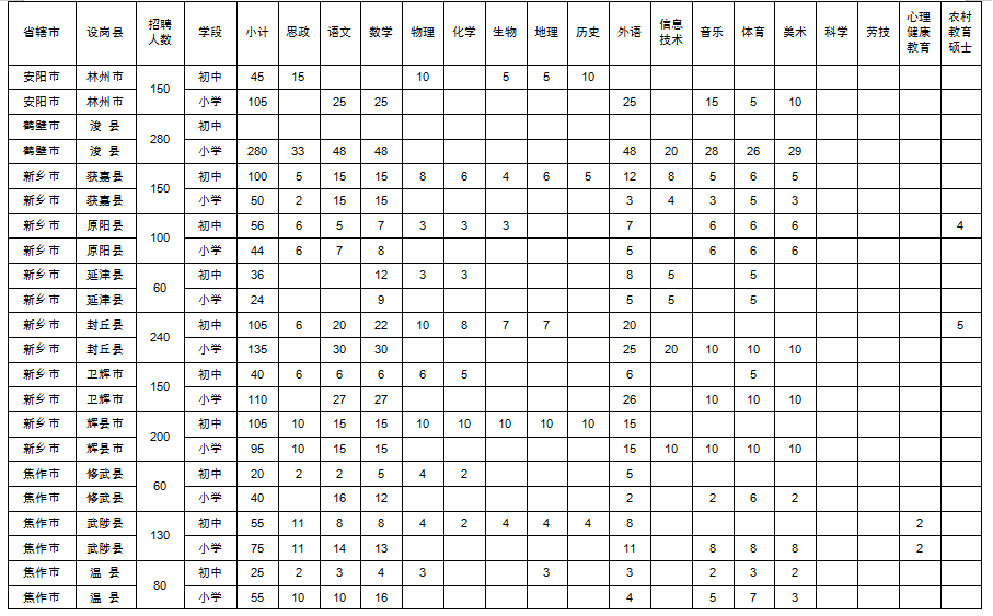 据了解,“特岗计划”是省教育厅等部门贯彻落实省委、省政府“保就业”“促民生”决策部署,引导高校毕业生面向基层就业的一项重要工作举措,在促进毕业生高质量就业、服务乡村振兴战略等方面发挥着重要作用。今年省委、省政府将特岗教师招聘作为2021年河南省重点民生实事予以保障,重点推进。据统计,我省自2009年实施“特岗计划”以来,中央财政已累计下达支持资金73亿元,为贫困地区招聘特岗教师89350名;省财政安排配套资金50亿元,为乡村学校补充特岗教师64000名。众多优秀的大学毕业生到农村从事中小学教育工作,给我省广大农村学校注入了新的生机和活力,有力地促进了农村教师队伍建设和乡村教育振兴。