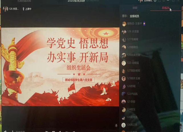 8月8日下午,精诚书院学生第六党支部书记王春平及全体学生党员在网络上连线召开8月份组织生活会。