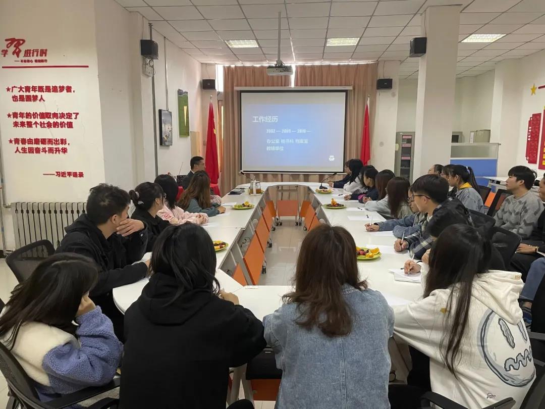 活动伊始,薛宏从个人经历谈及,为同学们分享了学习、工作和生活方面的经验。薛宏娓娓而谈,同学们感触颇深。此外,薛宏强调了语文学习在大学学习中的重要作用,并就公文稿件的写作方法与技巧,从层次、内容、格式、表达方式等多个方面逐一为同学们进行讲解,极大地提高同学们对公文写作的兴趣。
