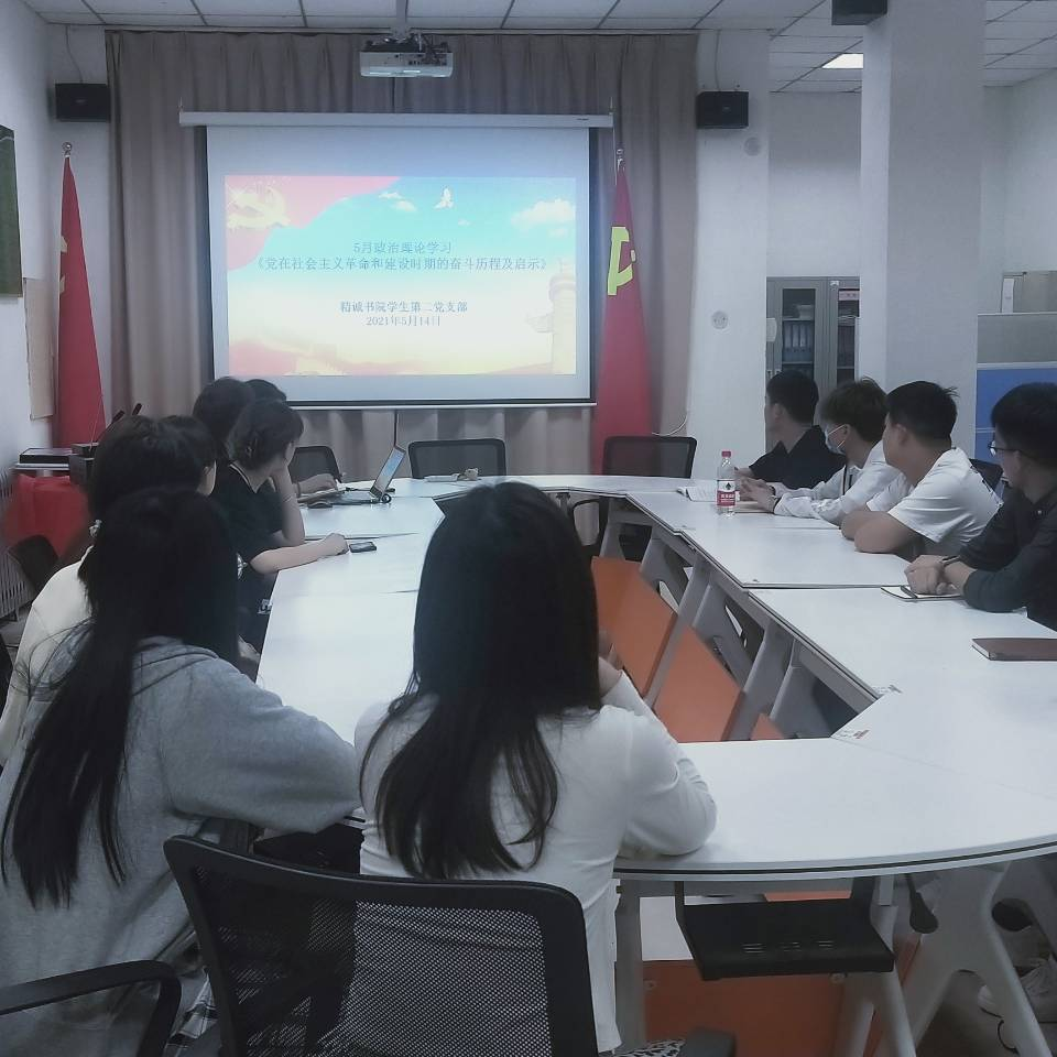 2021年5月14日,精诚书院学生第二党支部全体党员在精诚书院党员活动室进行了5月政治理论学习。党支部书记张倩带领全体学生党员学习了《党在社会主义革命和建设时期的奋斗历程及启示》。