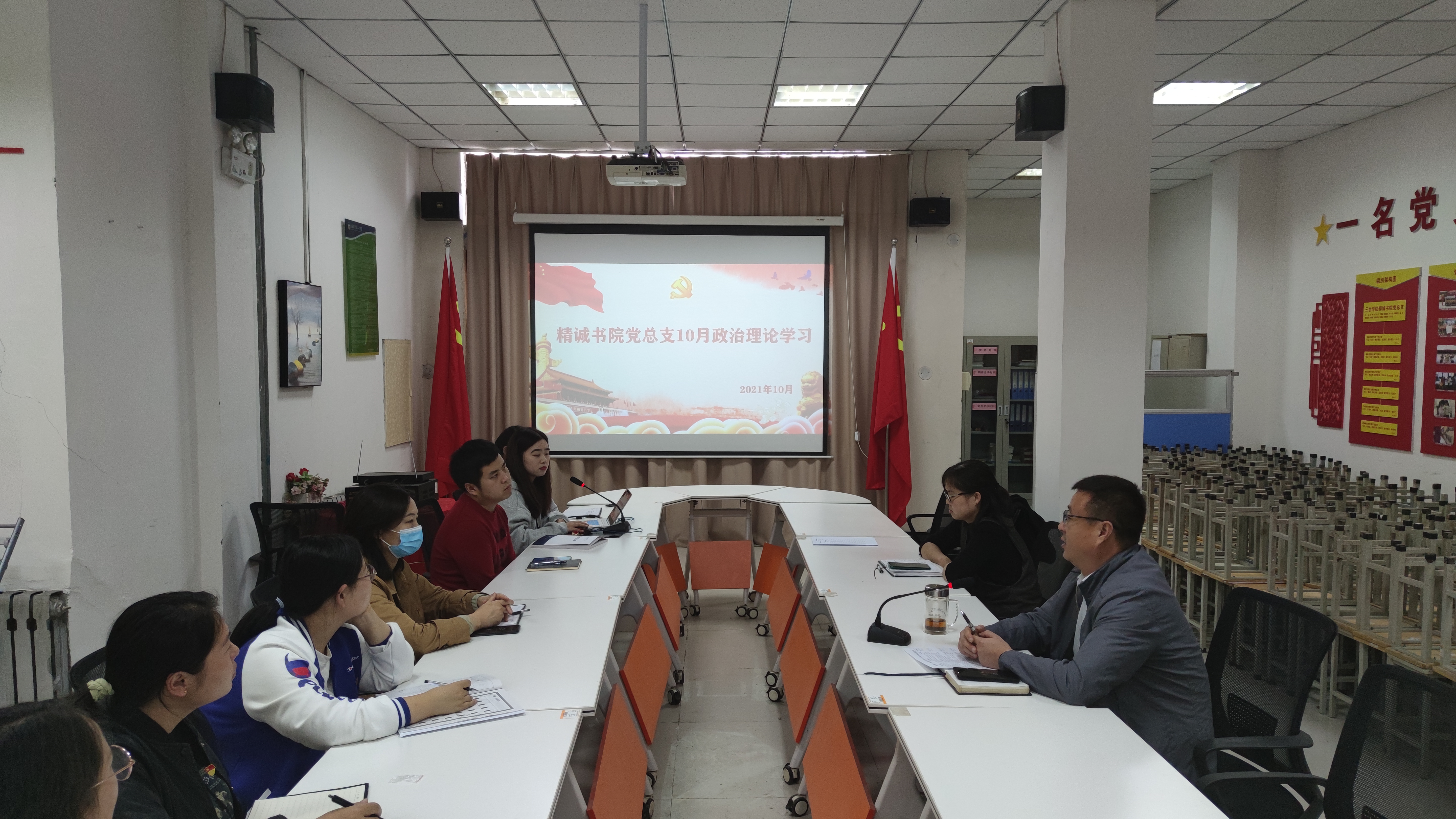 10月22日,精诚书院党总支在平原校区党员活动室召开10月份政治理论学习会议,并以线上观看视频等形式展开学习,集中讨论学习了习近平在10月9日在纪念辛亥革命110周年大会上的讲话、在《求是》杂志上发表的《毫不动摇坚持和加强党的全面领导》的文章,会议由党总支书记张新主持,书院全体教职工参加。