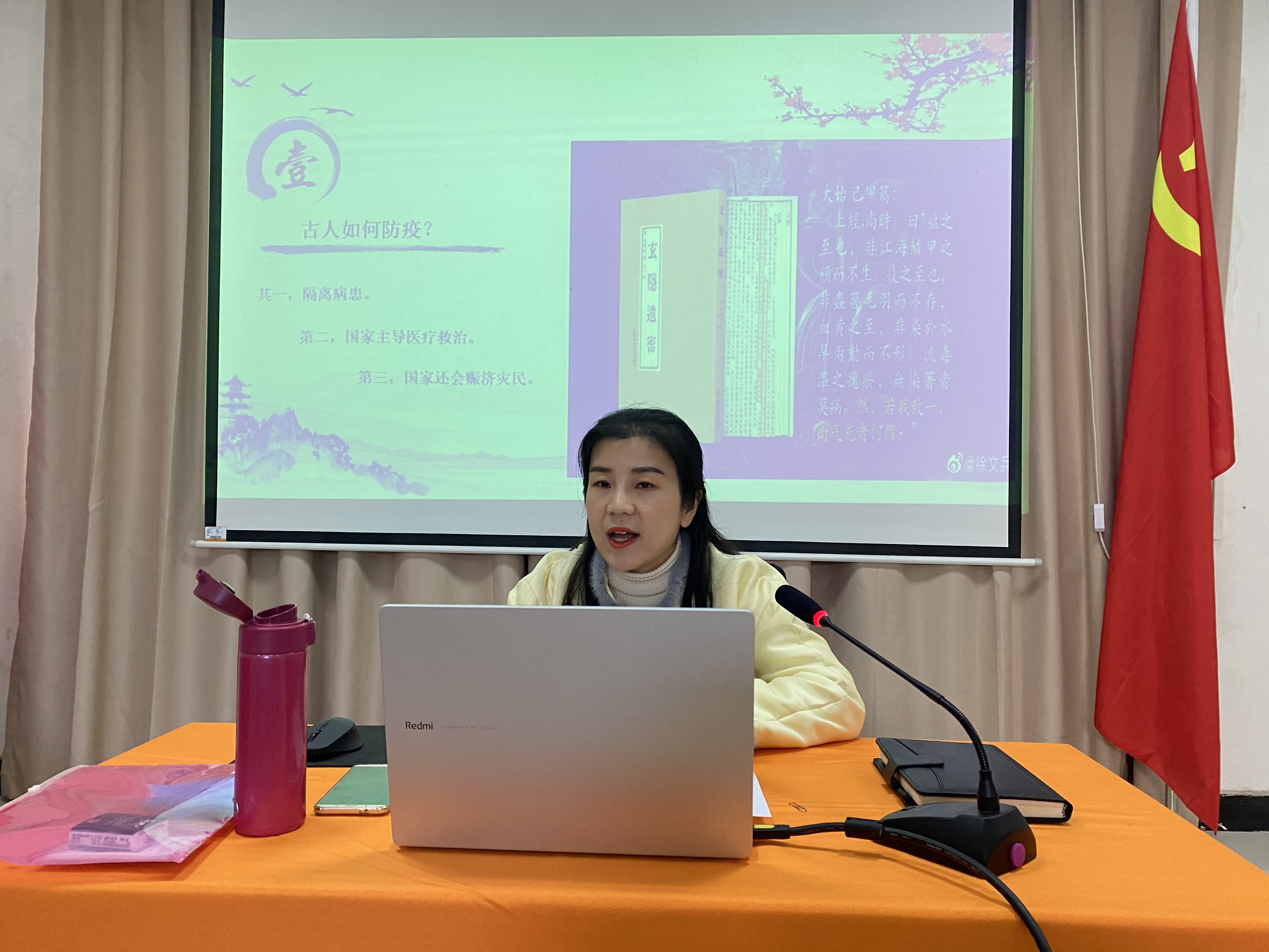 授课中,韩丽先从传统文化出发,讲述文化对于一个民族的重要性,延伸至传统文化中的中医文化思想,并且从“防疫与中医学”、“传统文化中的中医文化思想”、“亲近中医”三个方面深化“抗疫背景下传承发展中医药文化坚定中国传统文化自信”主题,结合抗疫背景指出中医药充分展现中医药文化在疫情防治中的创造性转化和创新性发展,彰显中医药文化的博大智慧和独特优势,为守好人民群众的健康之门,发挥了至关重要的作用。并根据中医六艺、《伤寒杂病论》等对中医药文化思想作出了解释与分析,使同学们更加深入了解中医药文化。