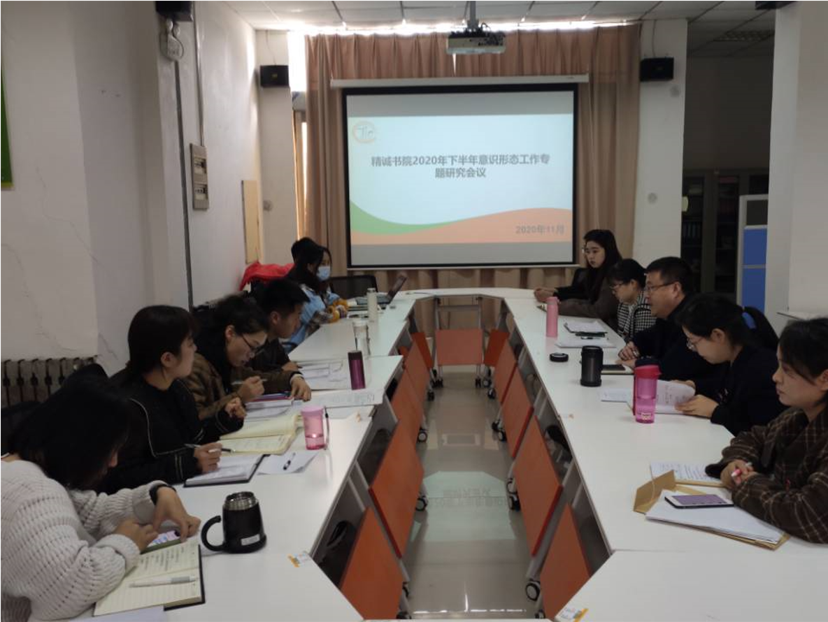 11月20日,精诚书院党总支组织召开2020年下半年意识形态专题工作研究会议。精诚书院全体教职工党员参加会议,党总支书记张新主持会议。